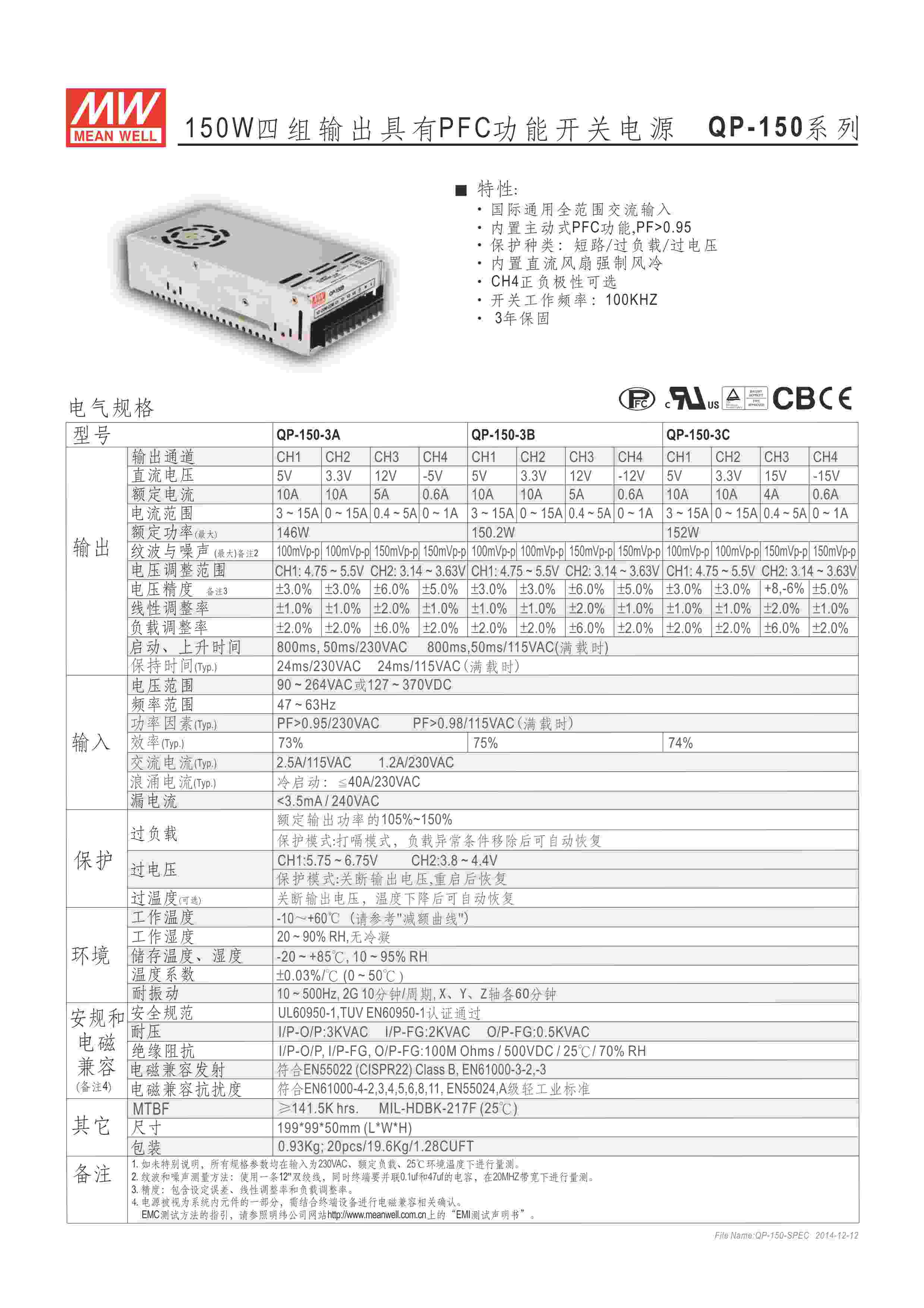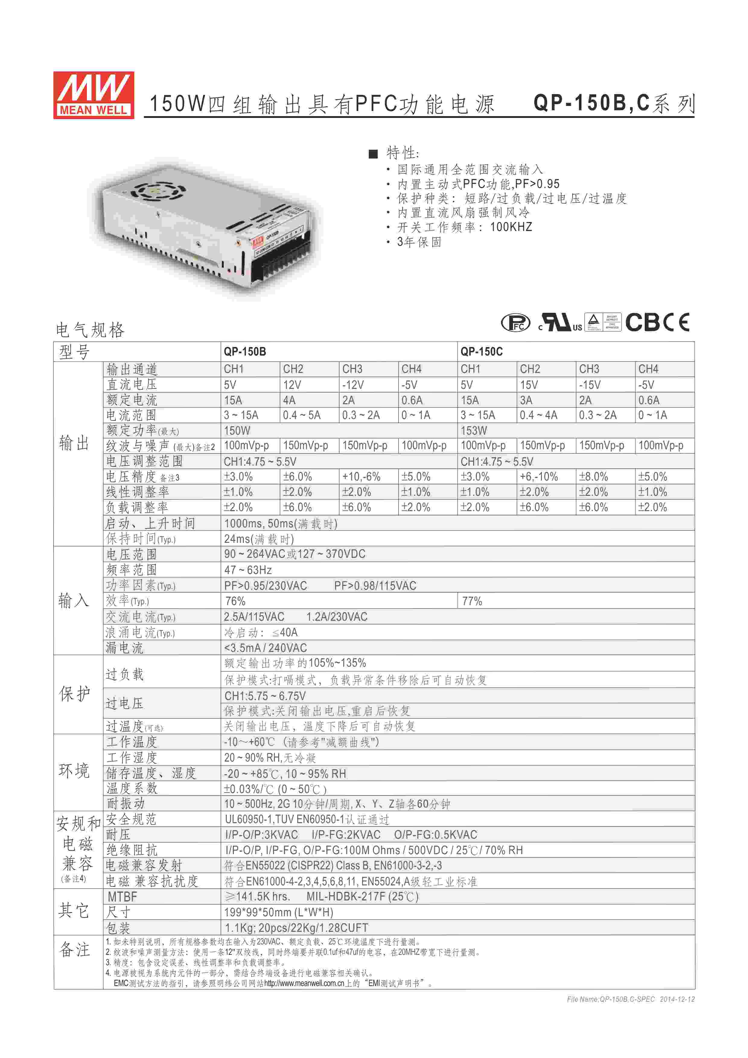 150W 4组输出 PFC