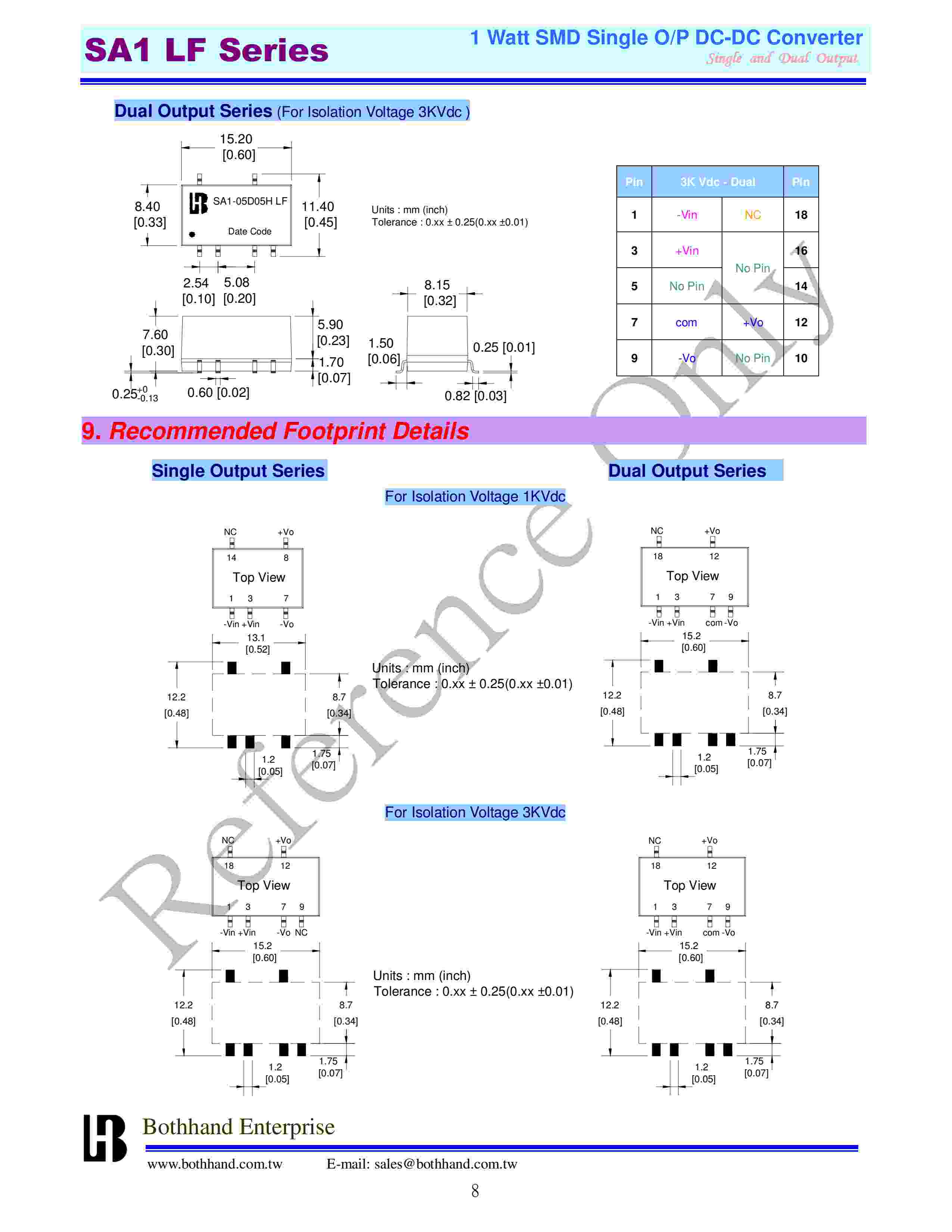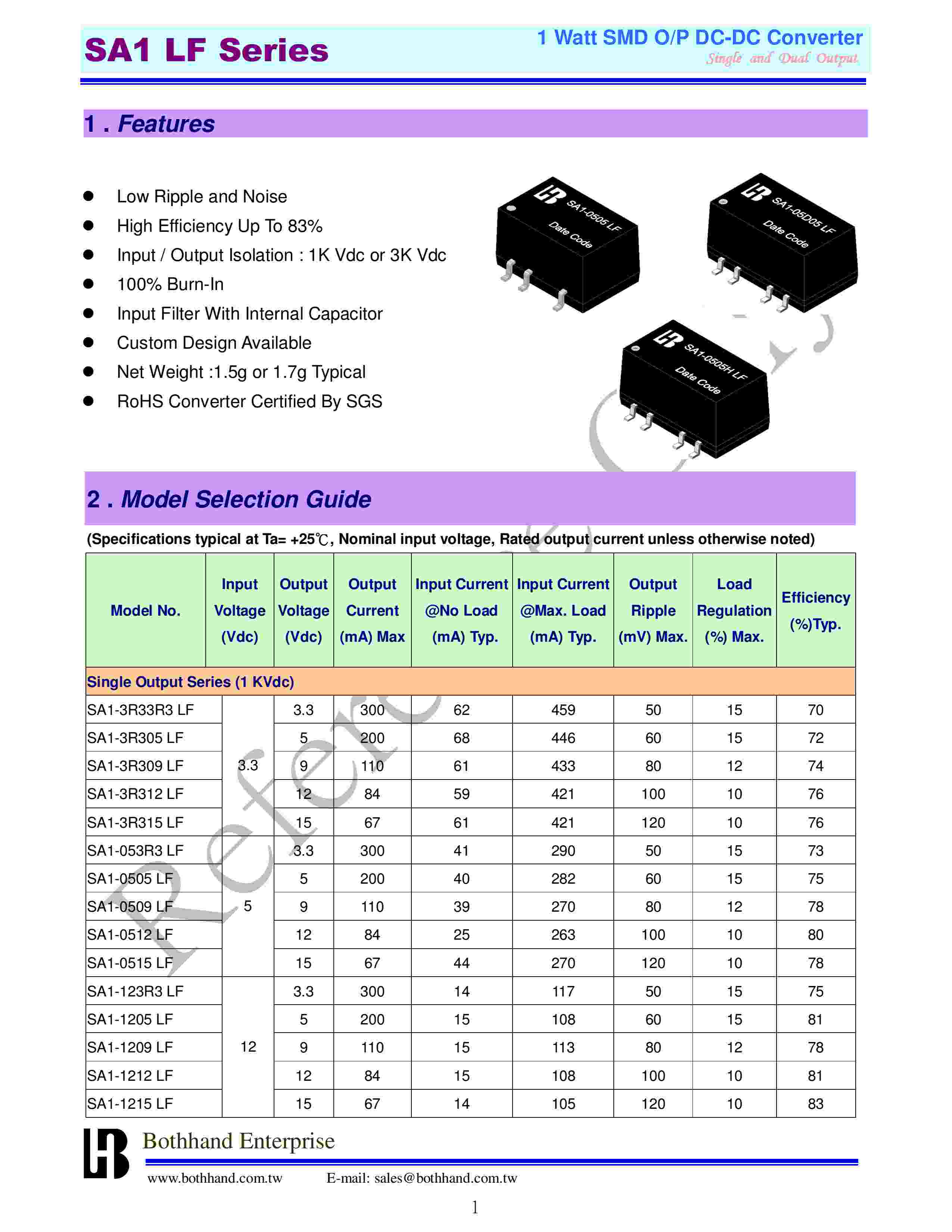 describe: 1 Watt SMD O/P DC-DC ConverterSingle and Dual Output