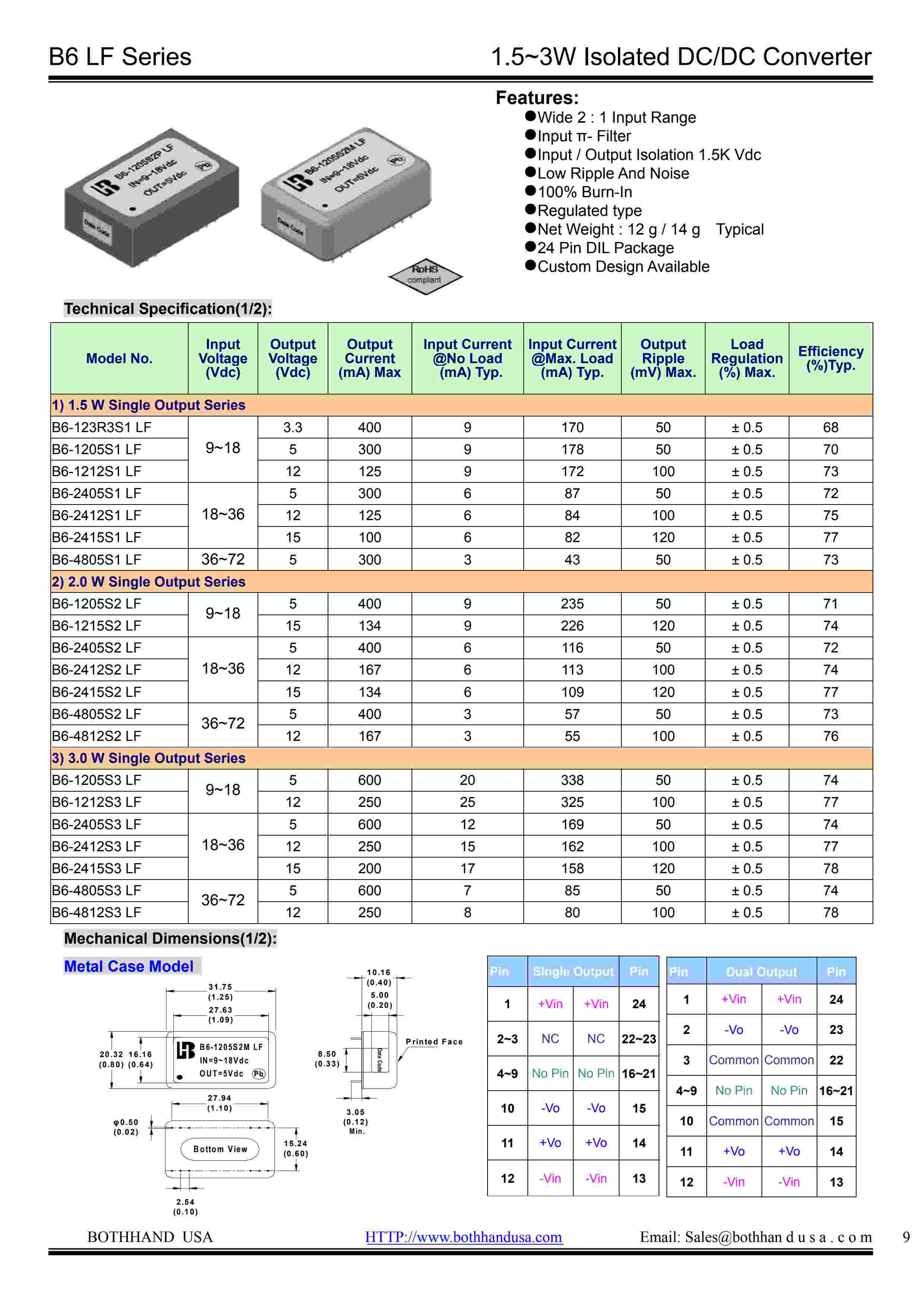 1.5~3W Isolated,Single/Dual DC/DC Converter