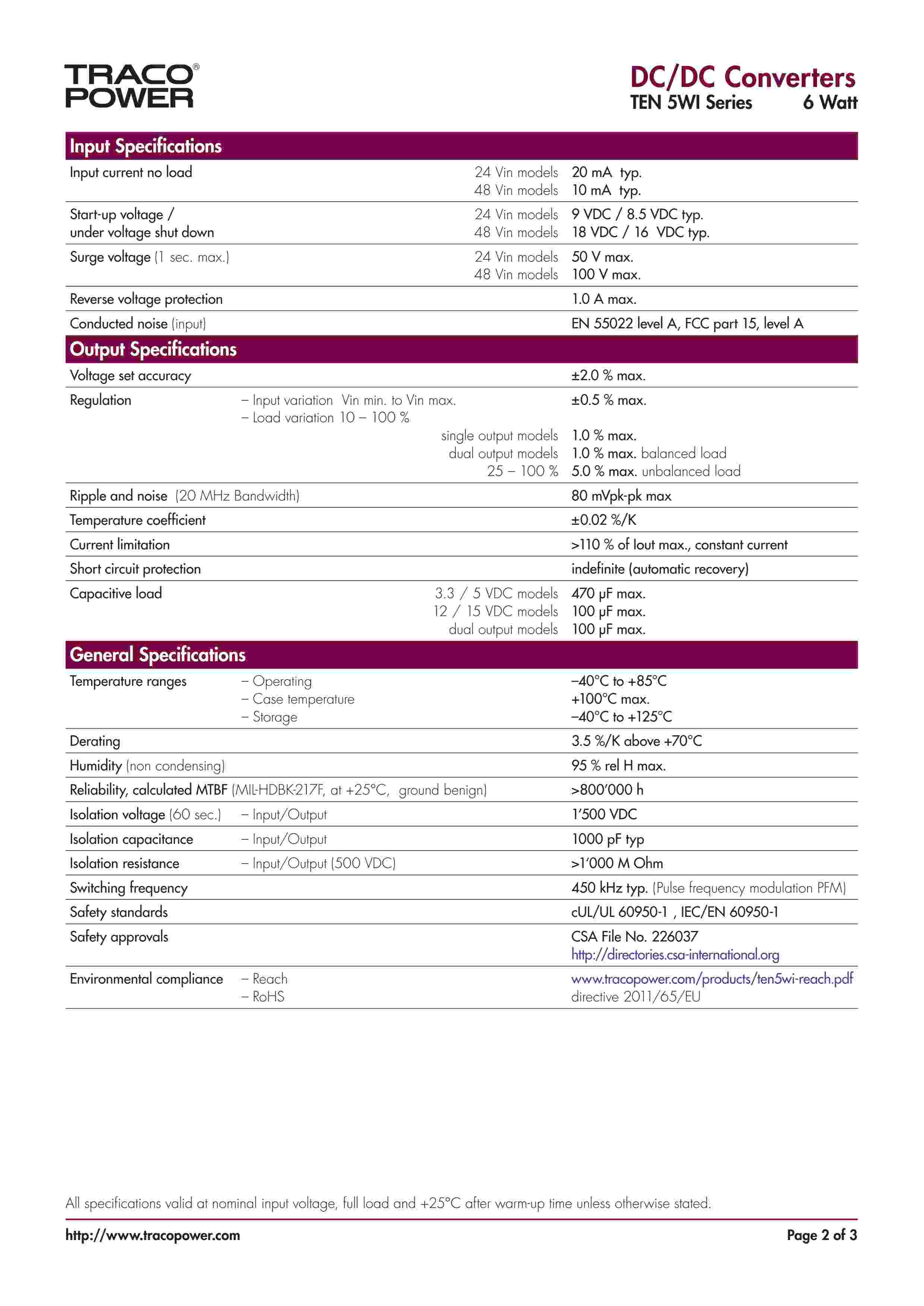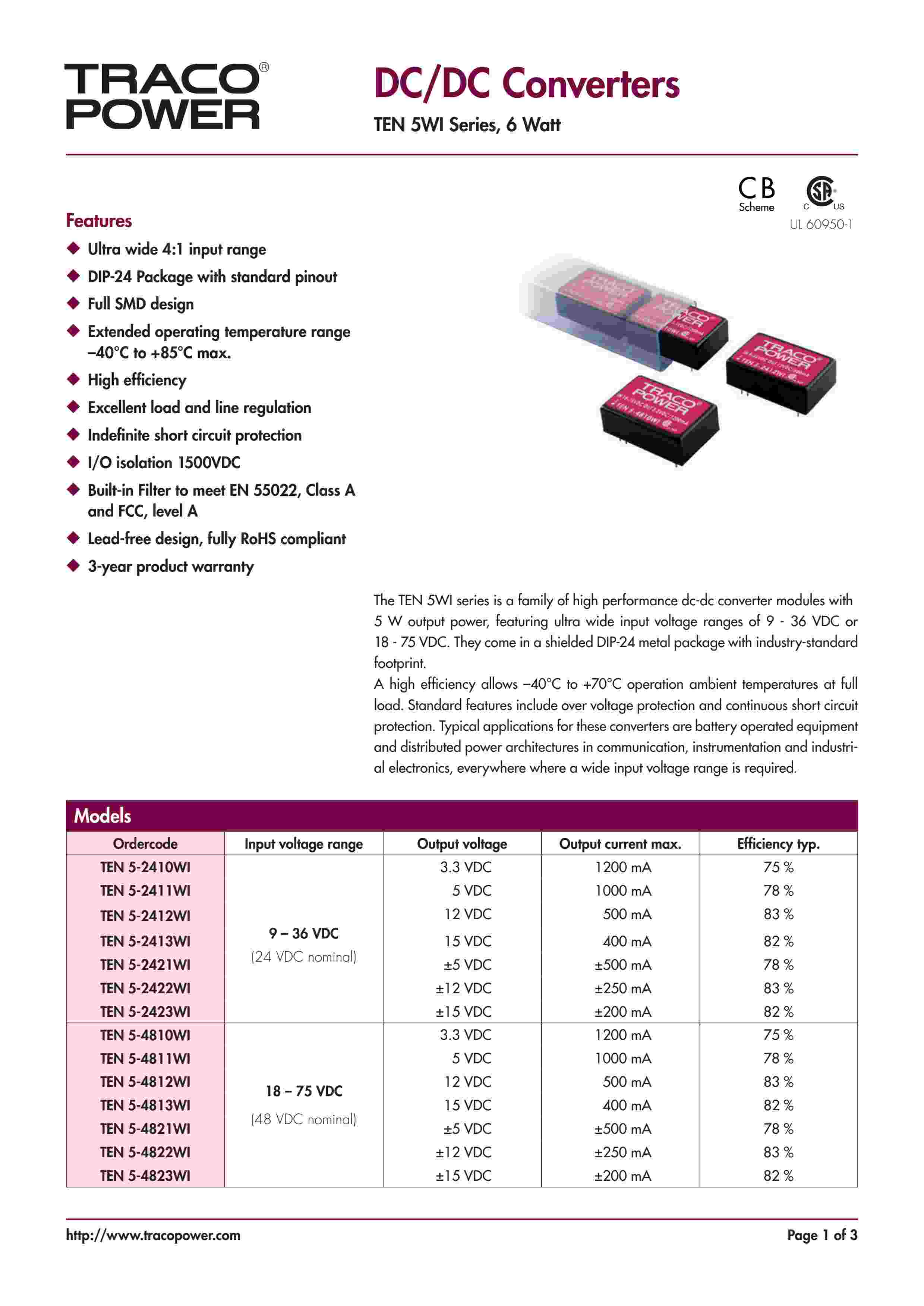 TEN 5WI Series, 6 Watt
