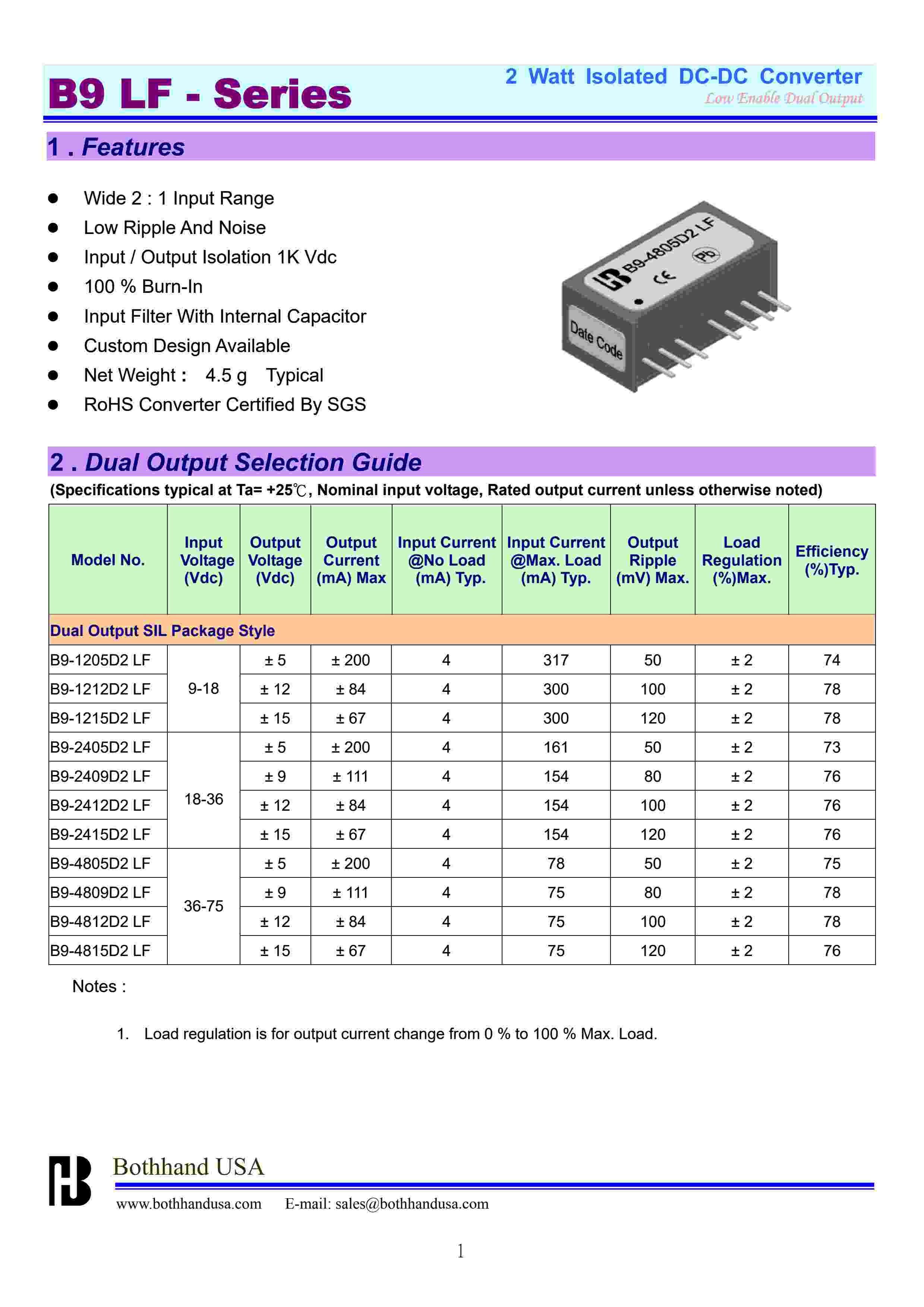 B9 LF- Dual Ouput