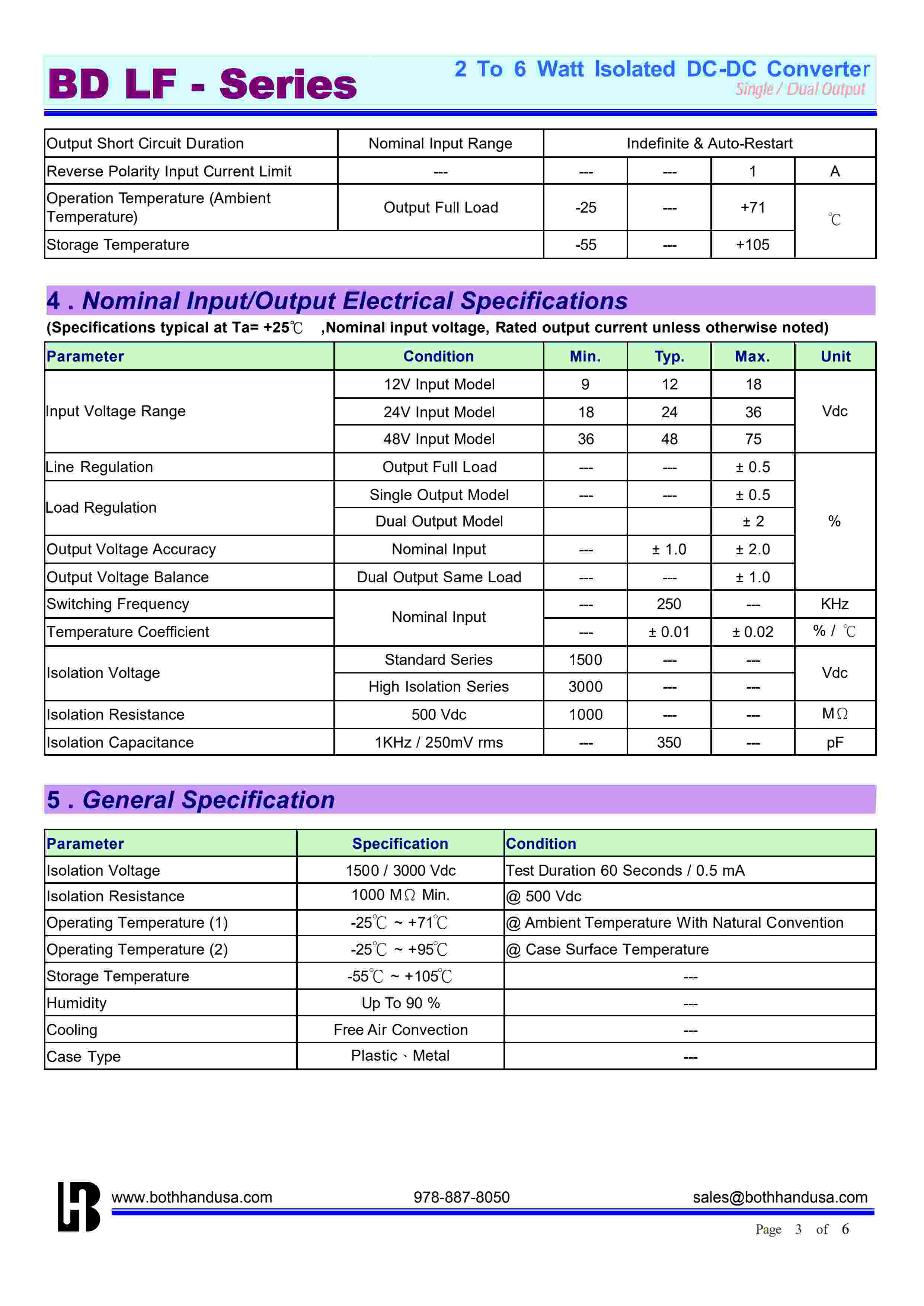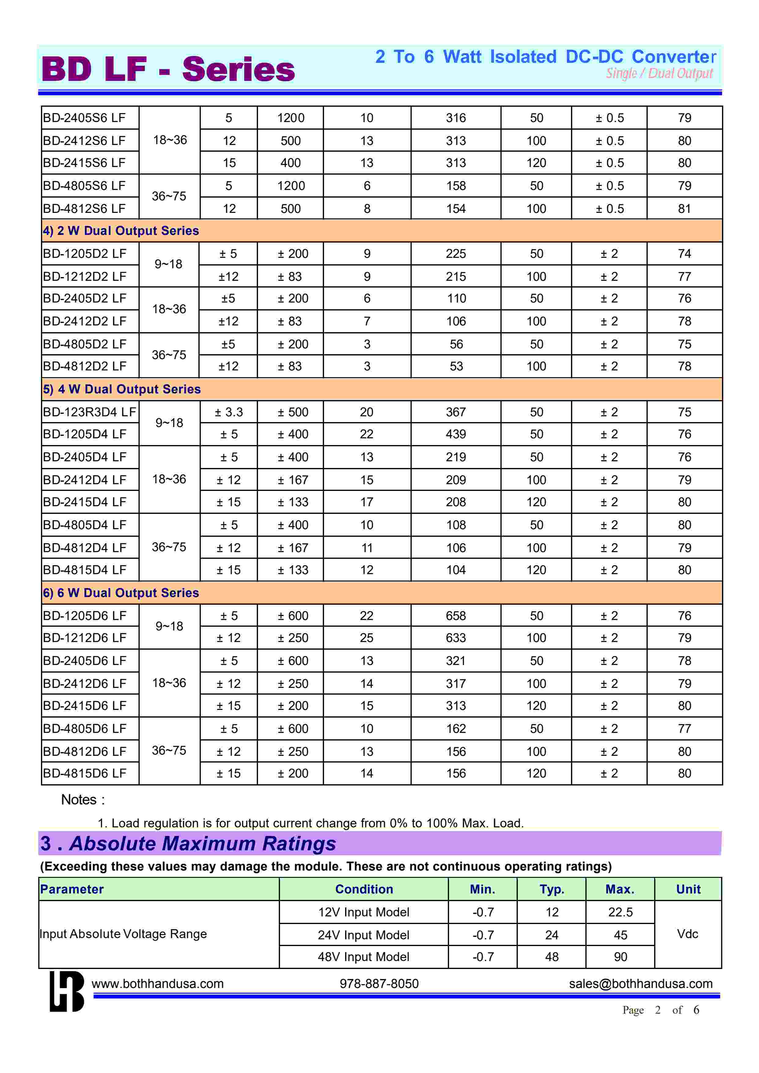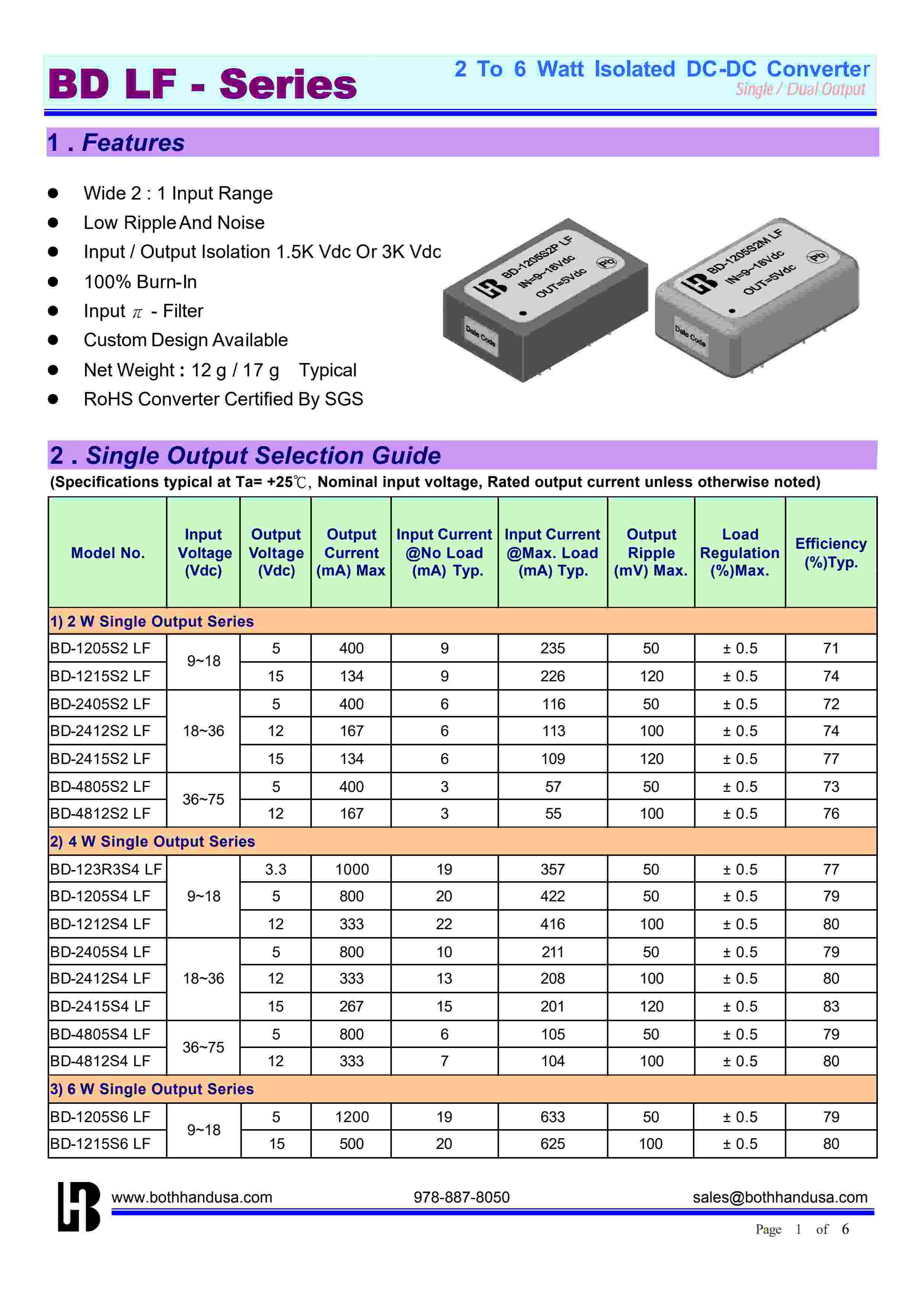 2 To 6 Watt Isolated DC-DC ConverterSingle / Dual Output