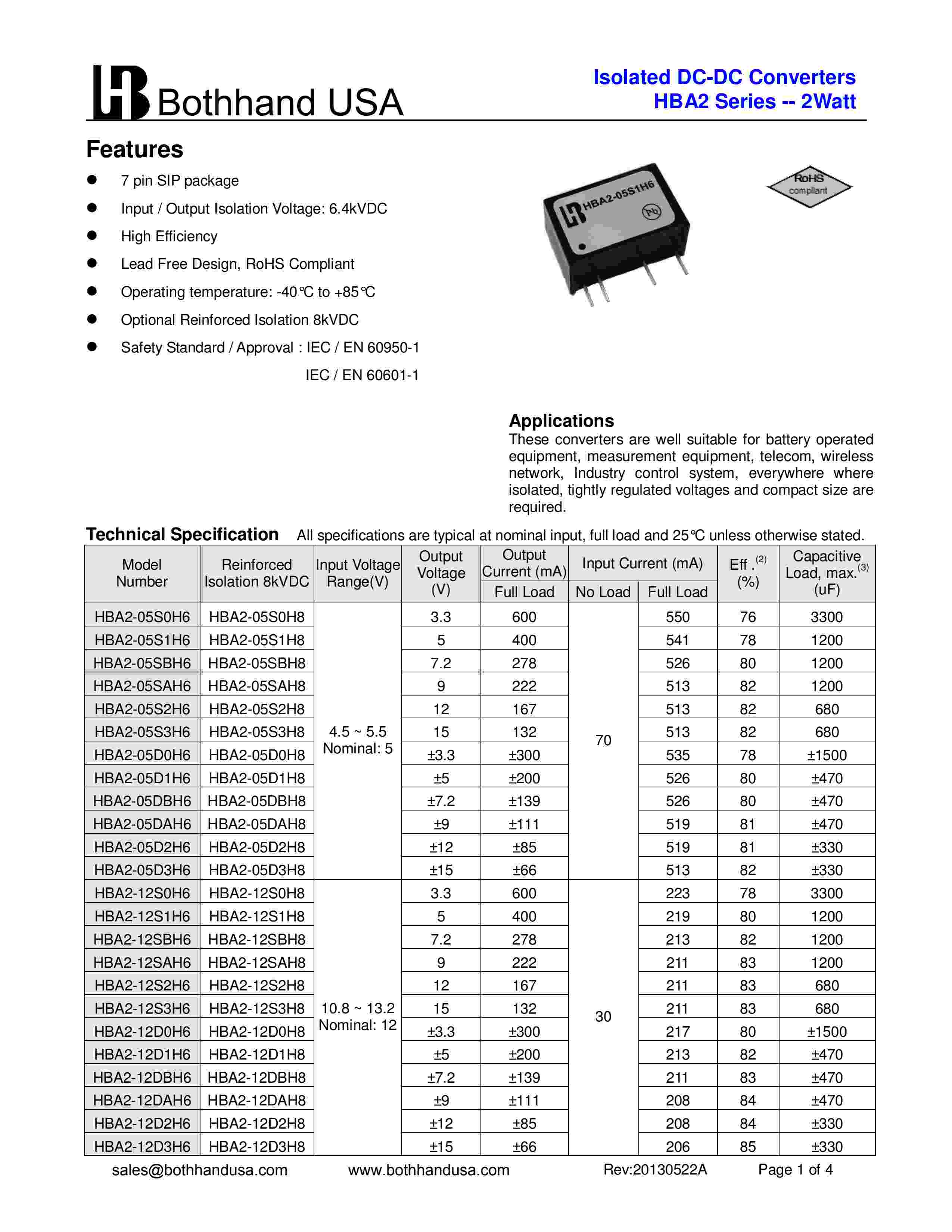 2Watt,Isolated DC-DC Converters