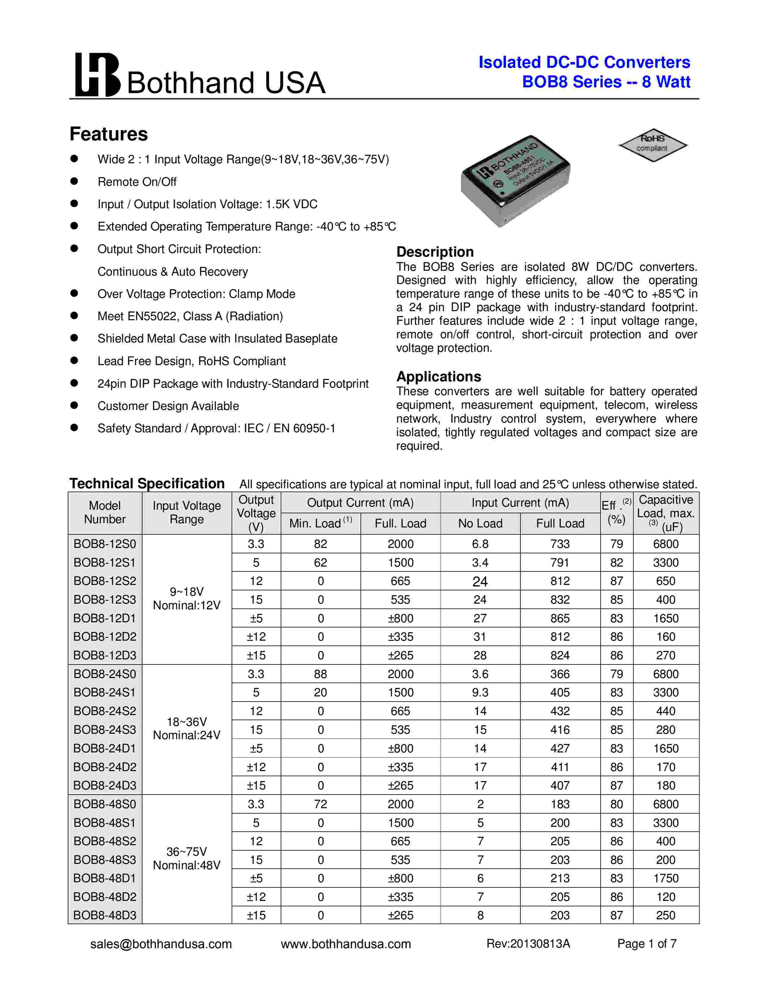 Wide 2 : 1 Input Range,8 Watt Isolated DC-DC Converter