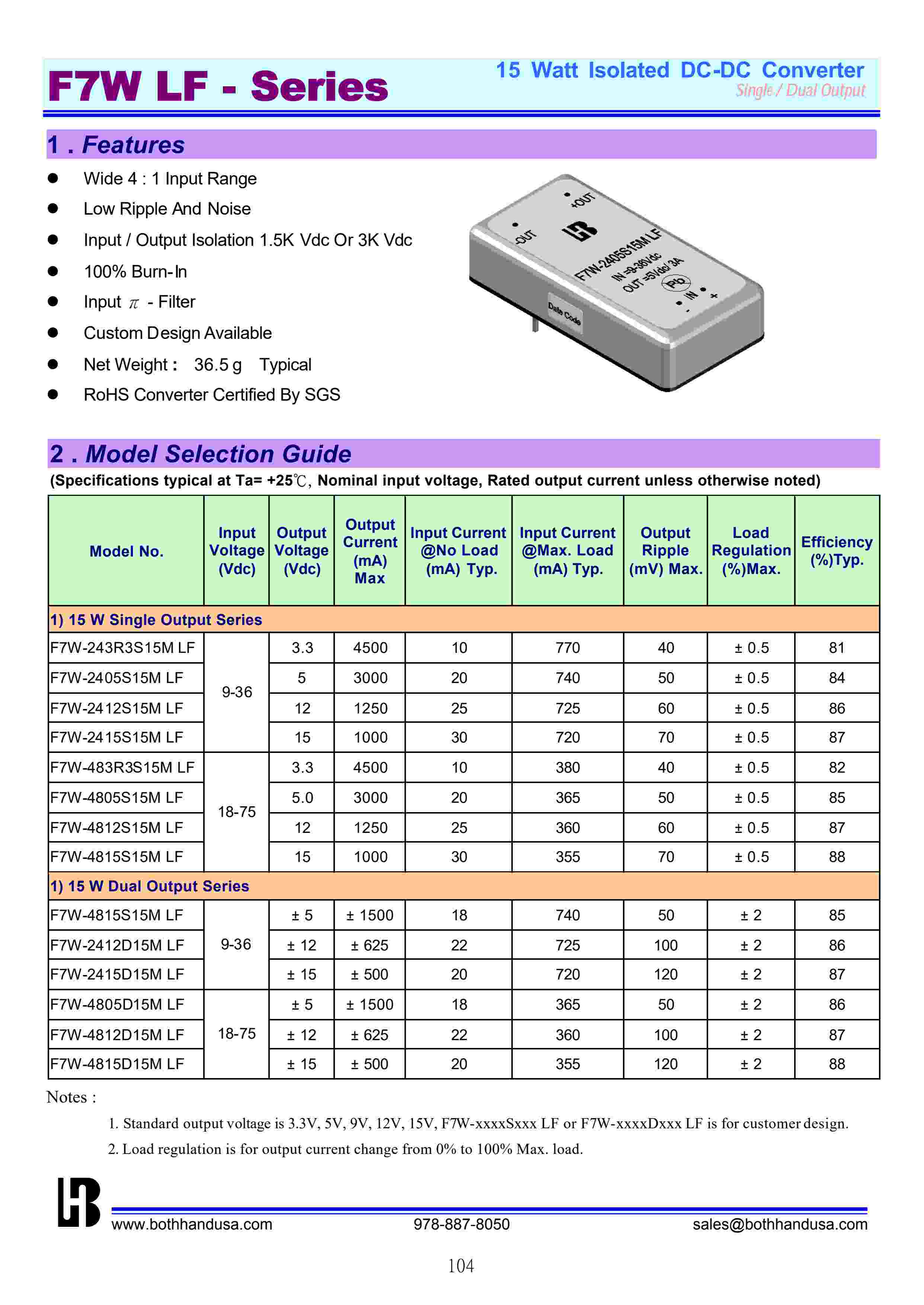 15 Watt Isolated DC-DC Converter,Wide 4 : 1 Input Rangel Low Ripple And Noise, Custom Design Available