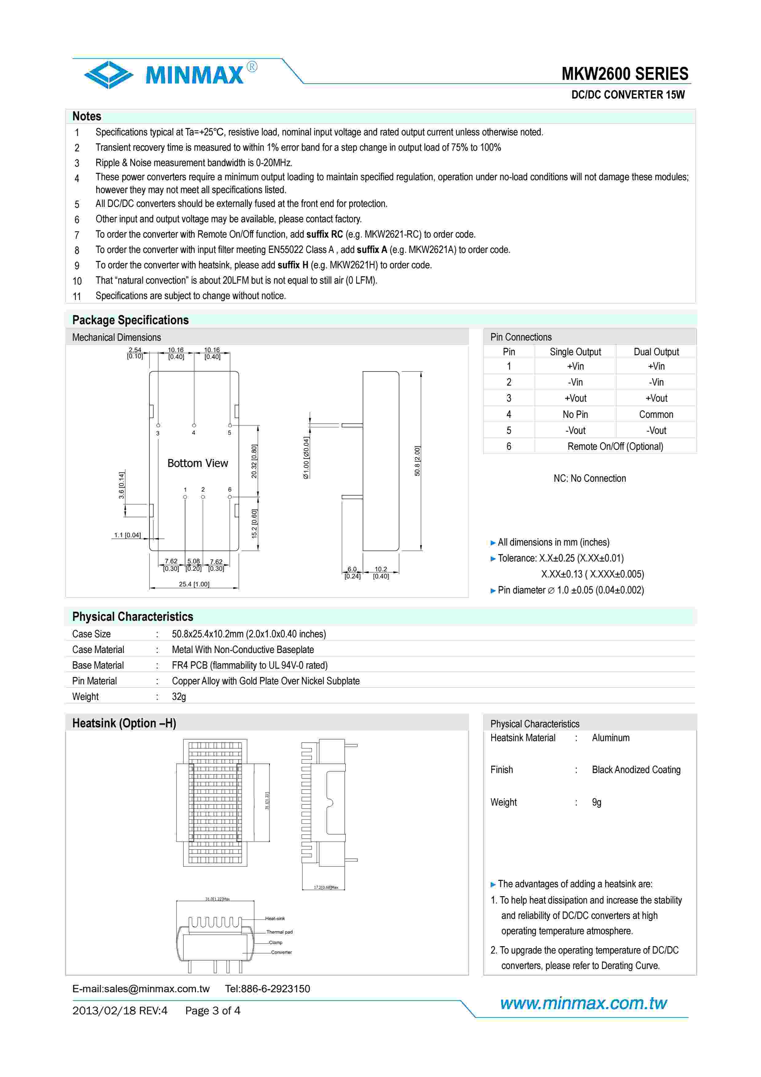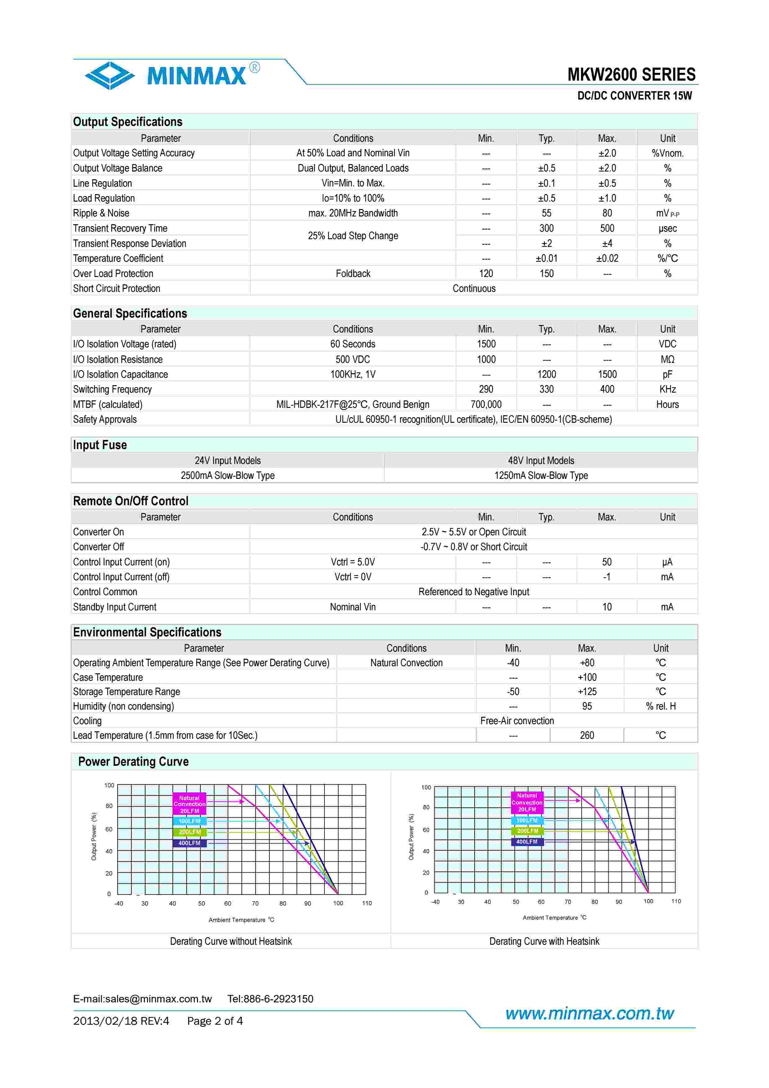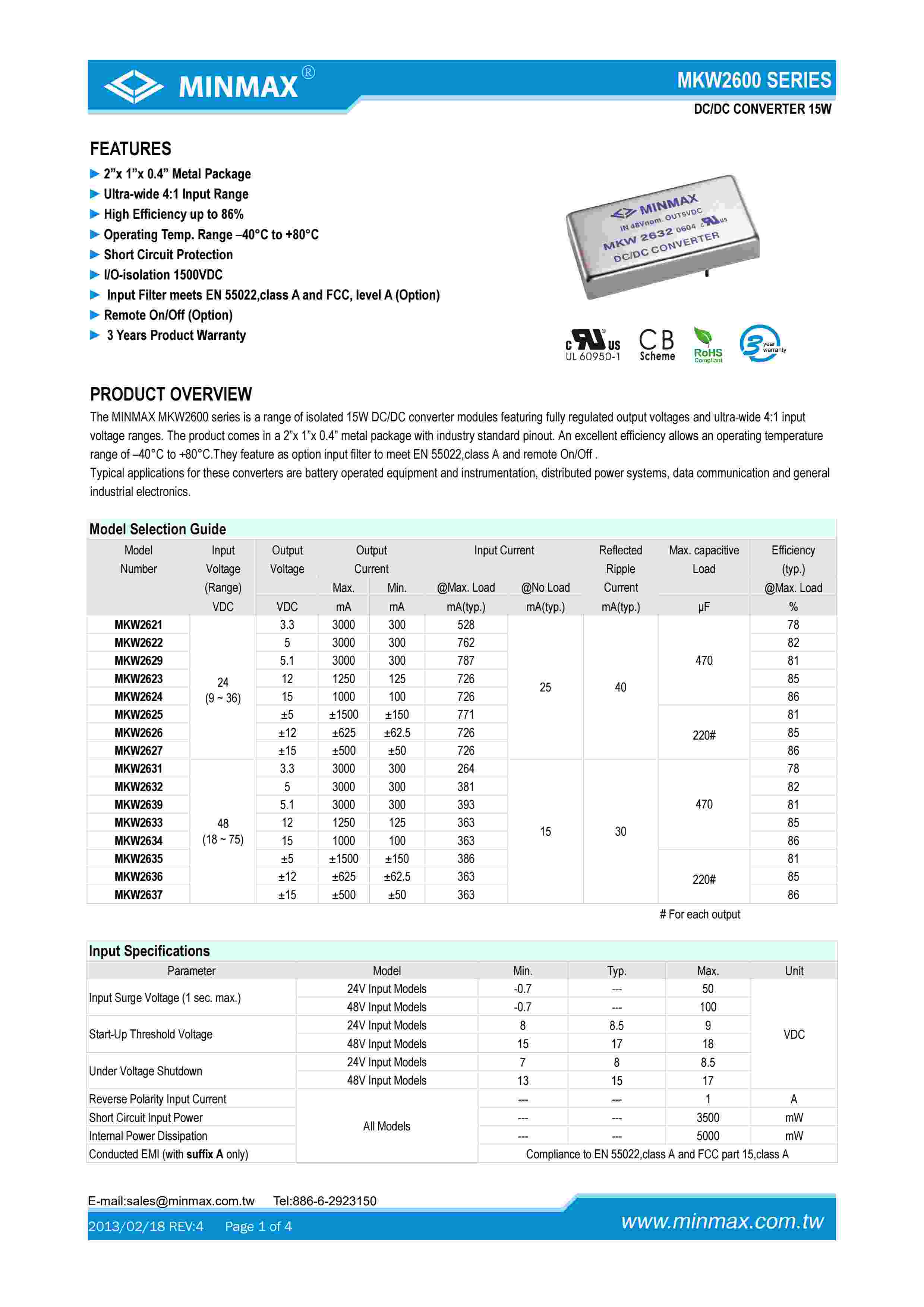 MKW2600 SERIES DC/DC CONVERTER 15W