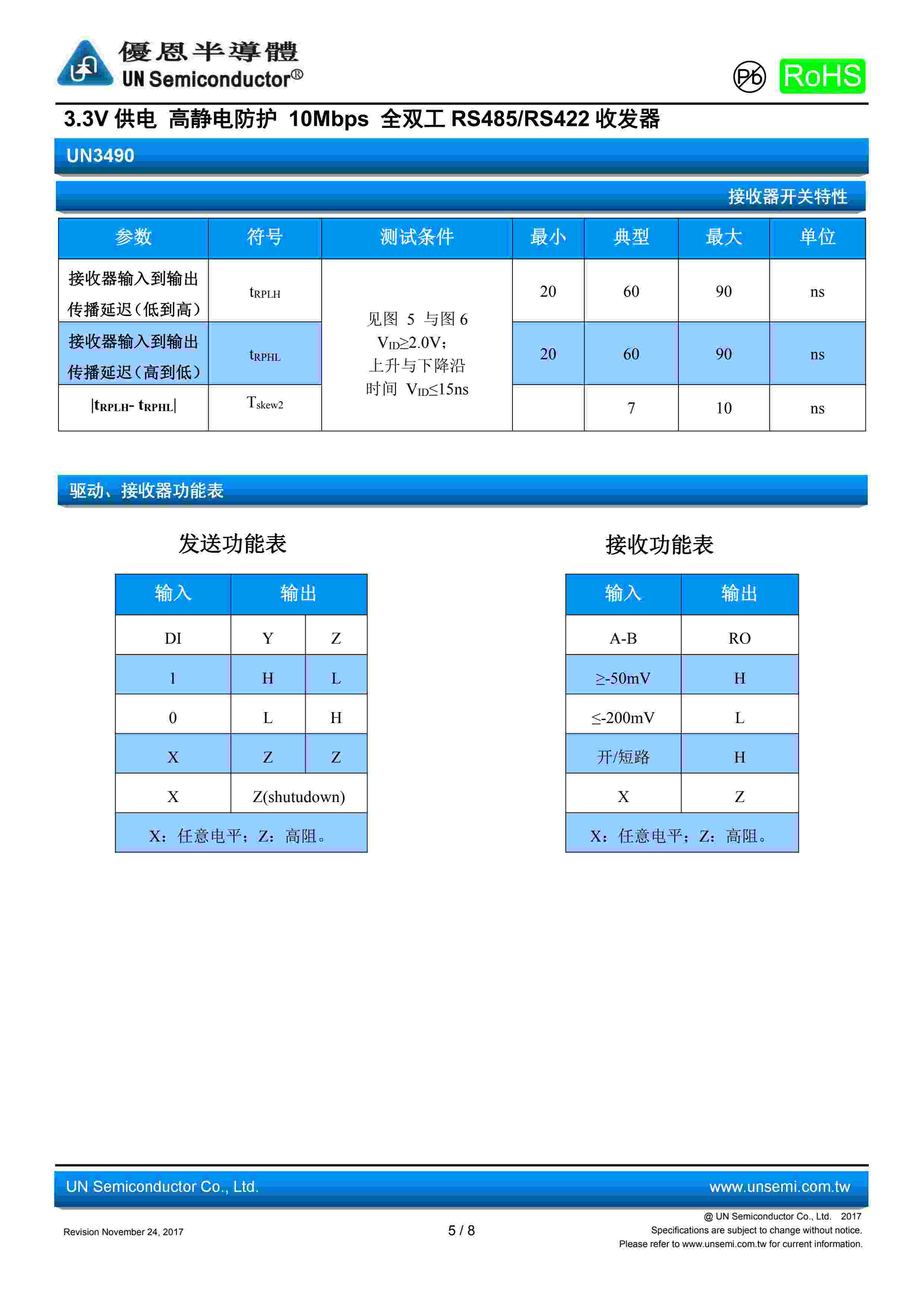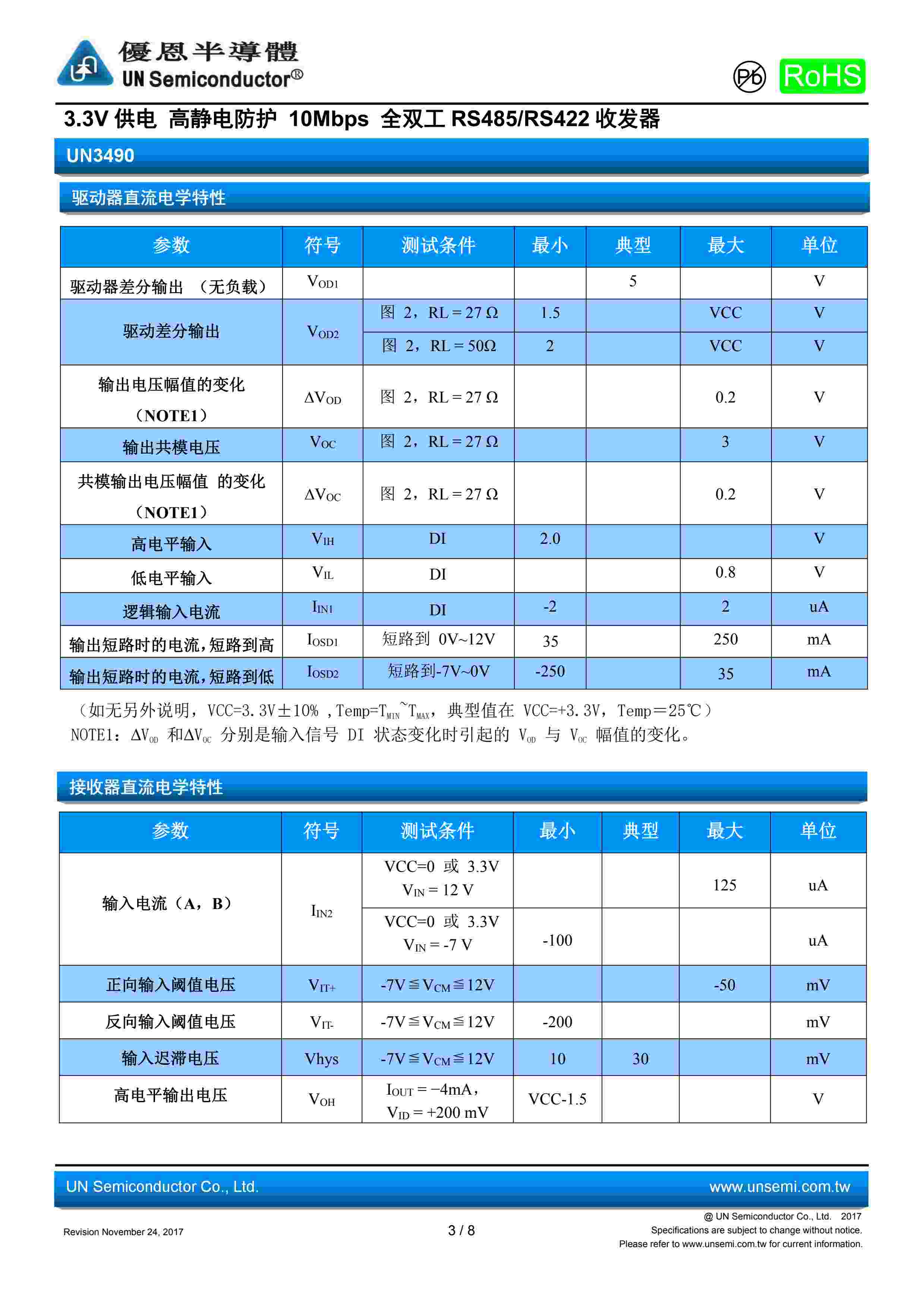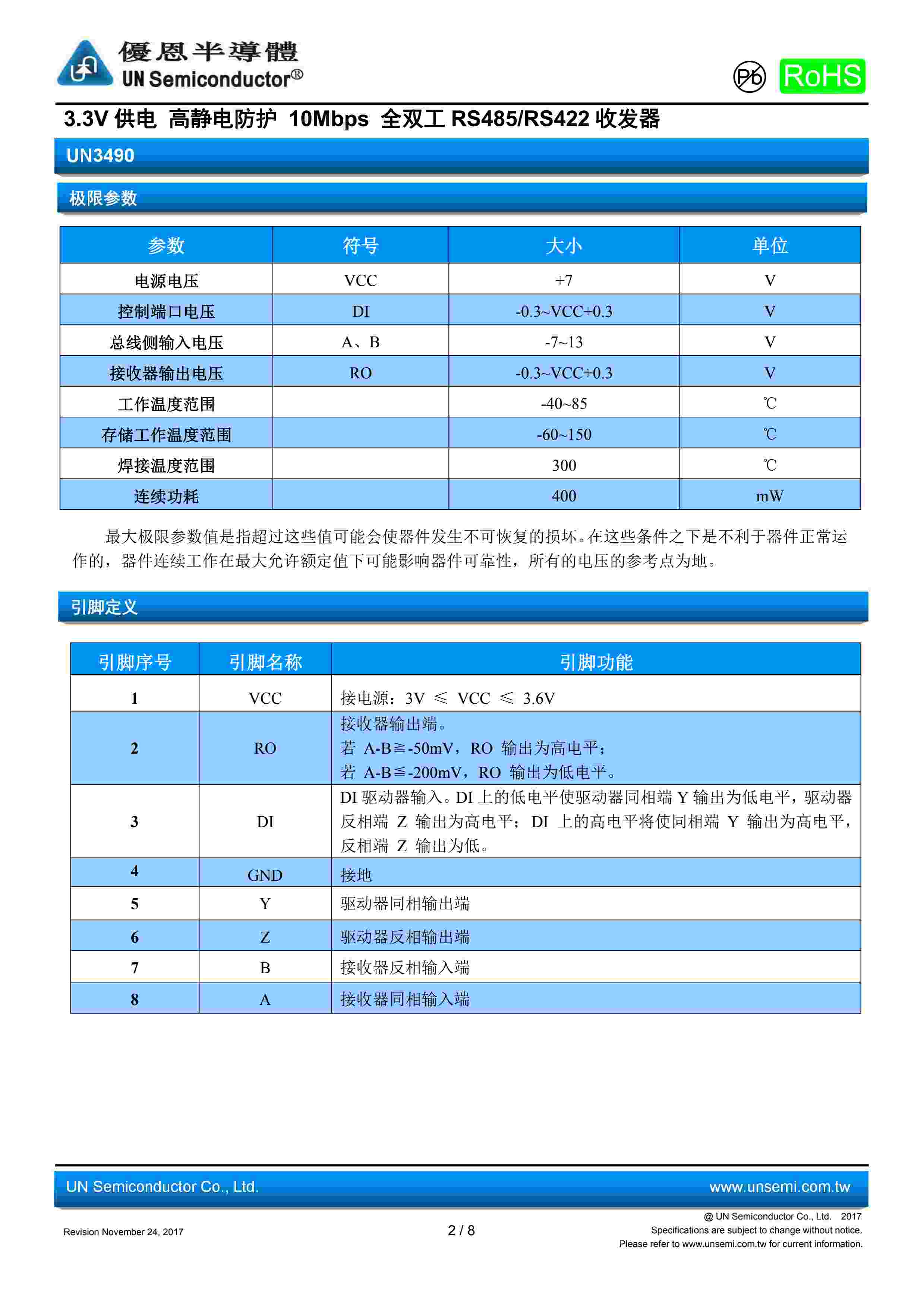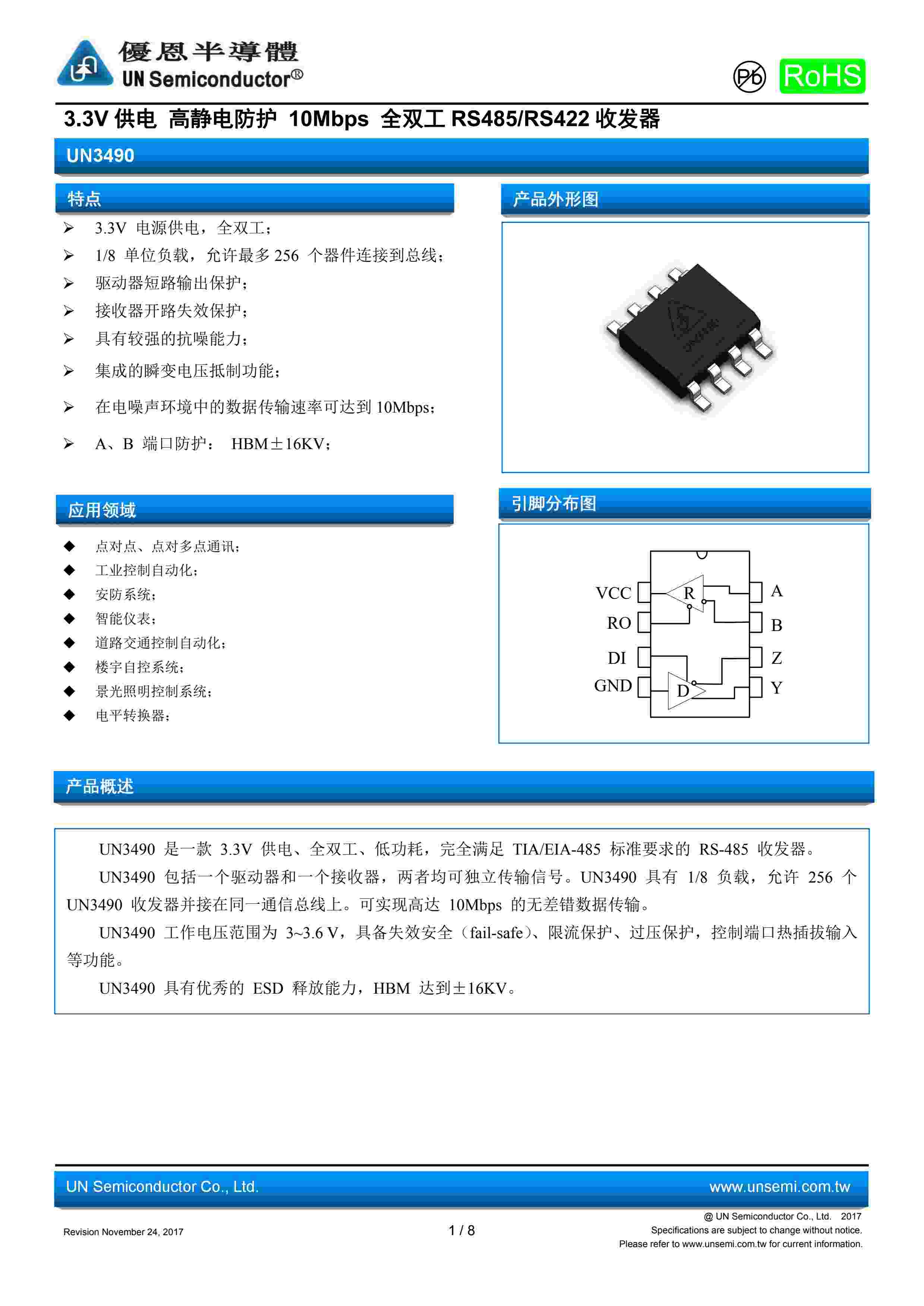 3.3V 供电 高静电防护 10Mbps 全双工 RS485/RS422 收发器