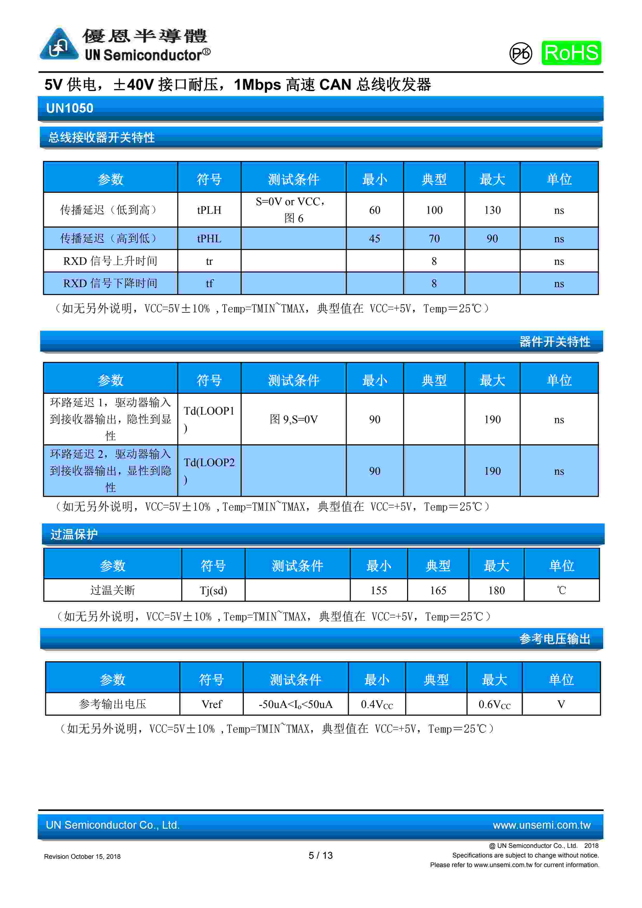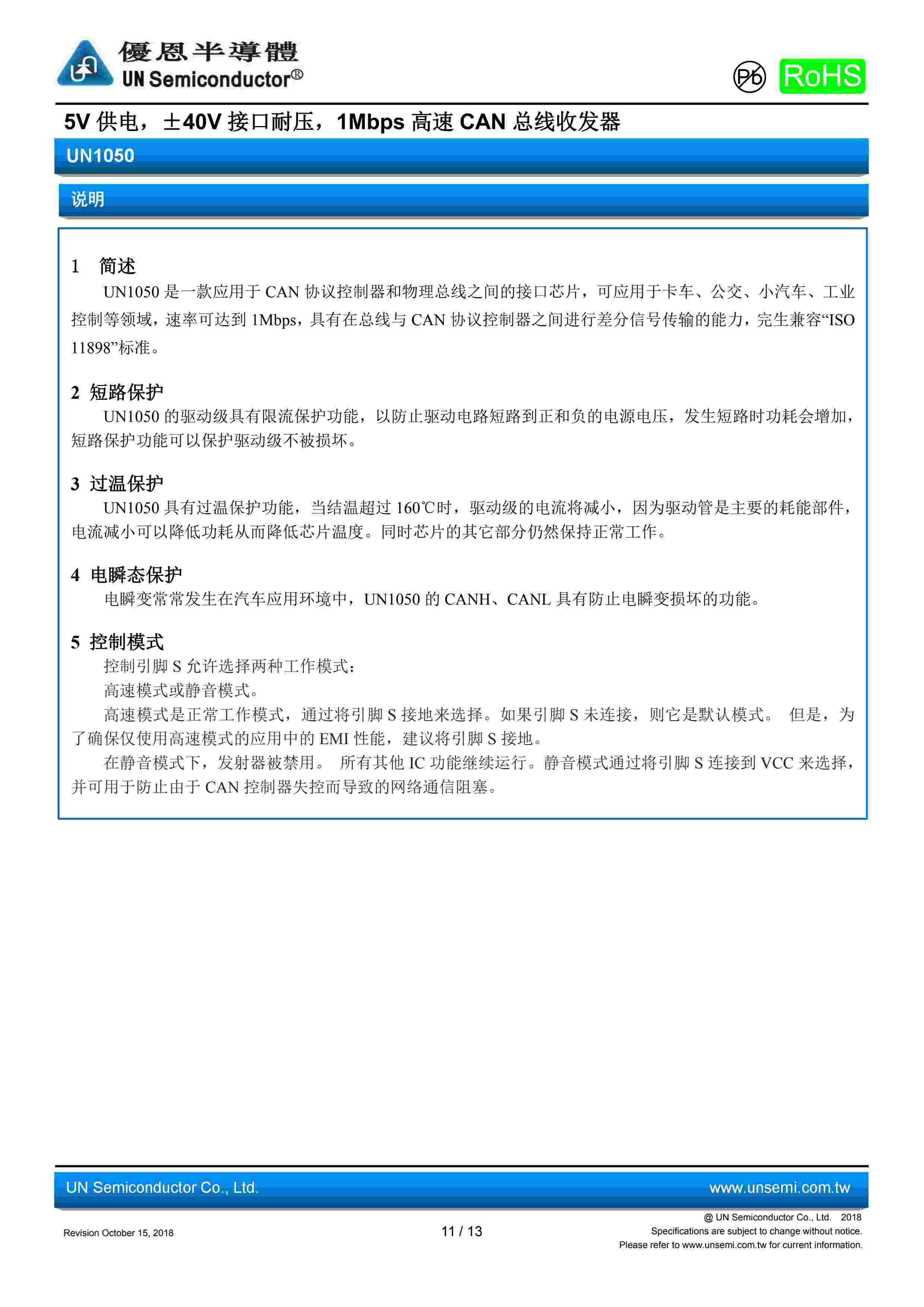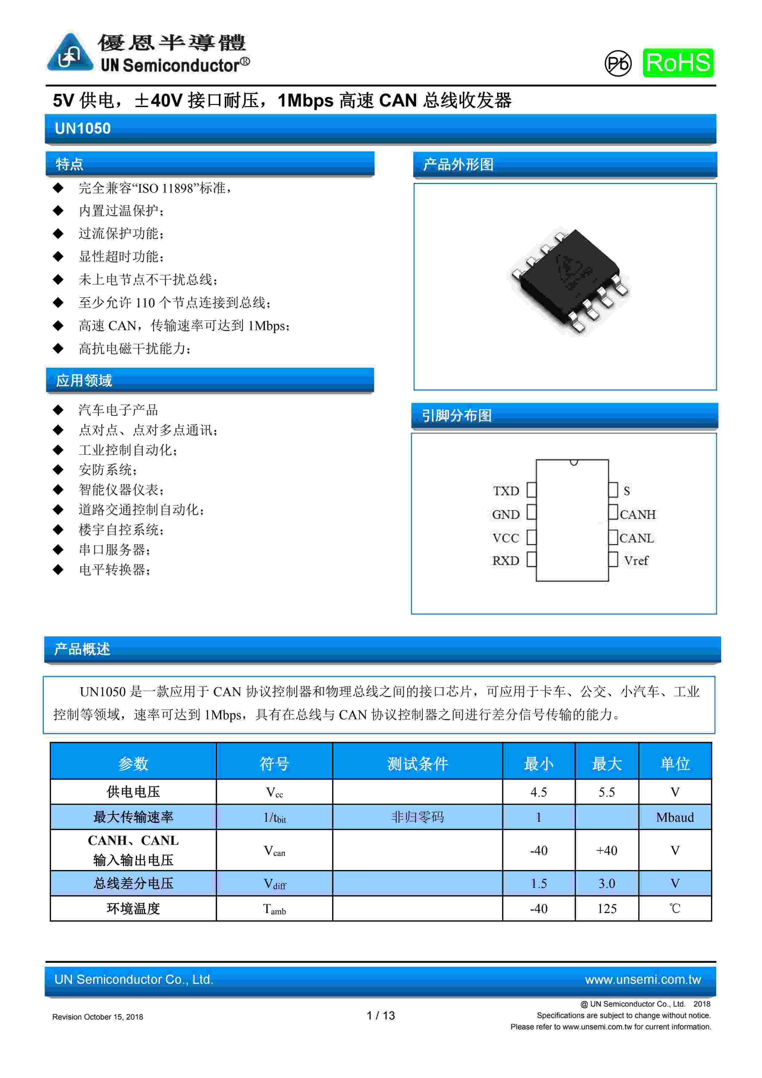 5V 供电,±40V 接口耐压,1Mbps 高速 CAN 总线收发器