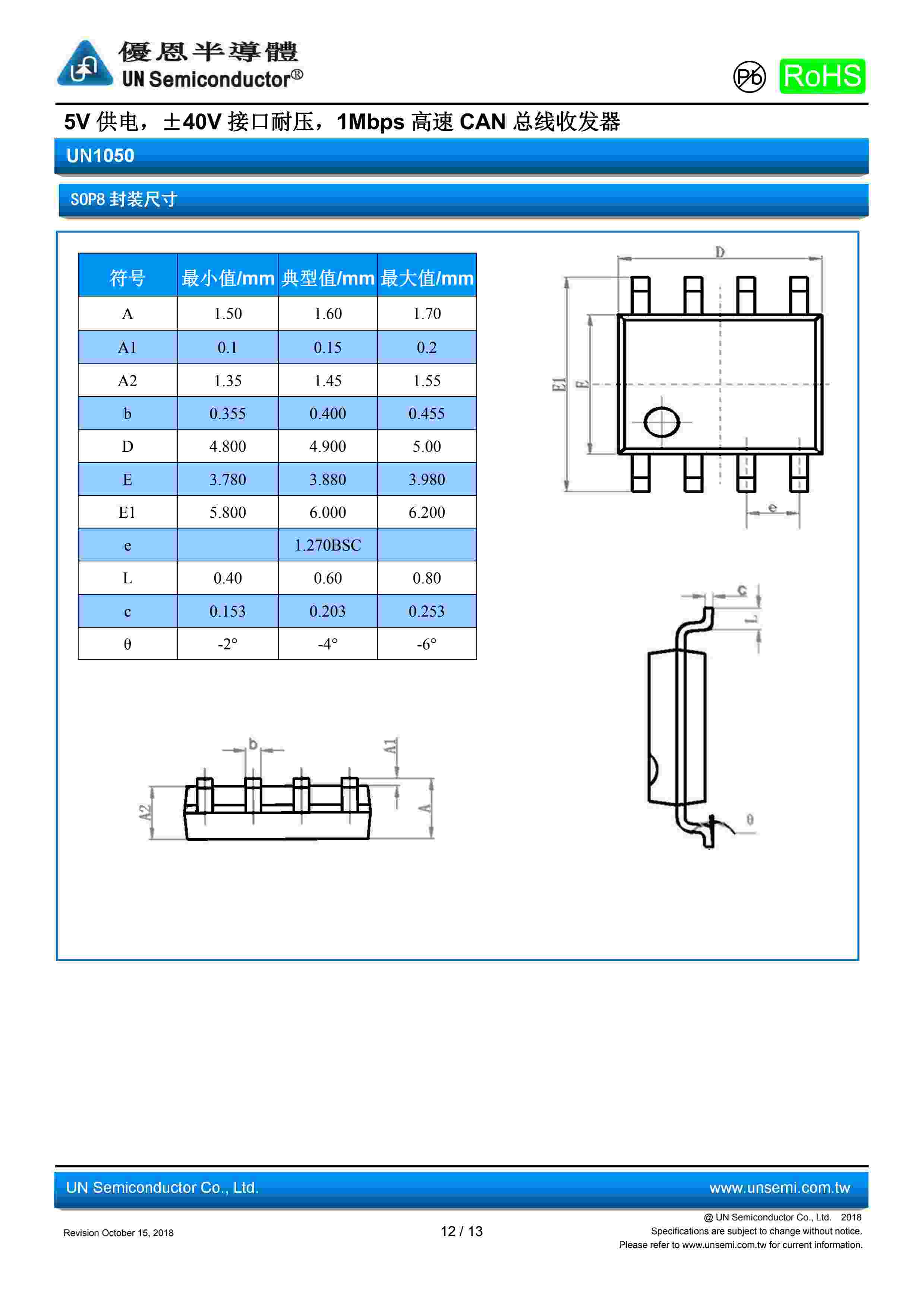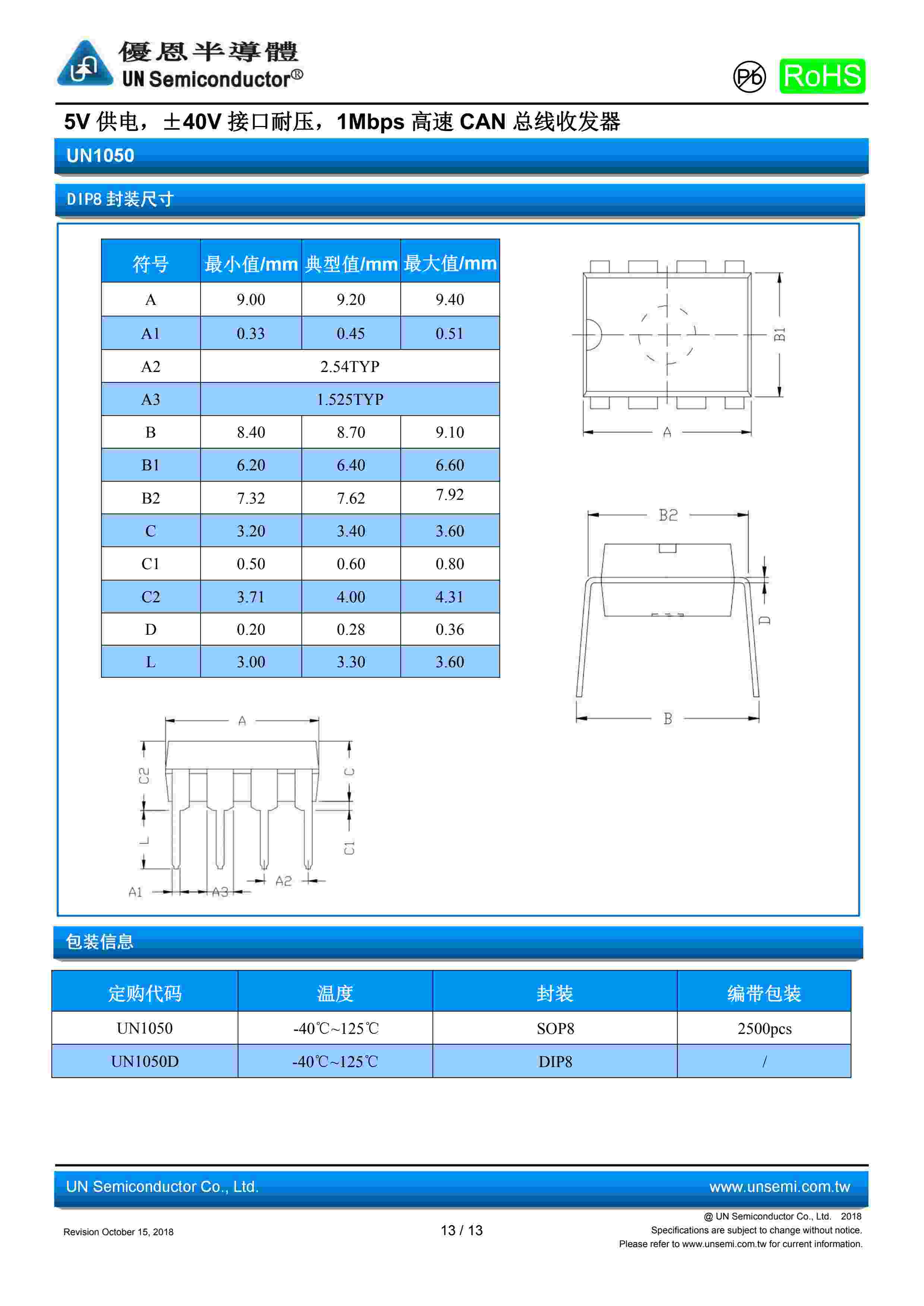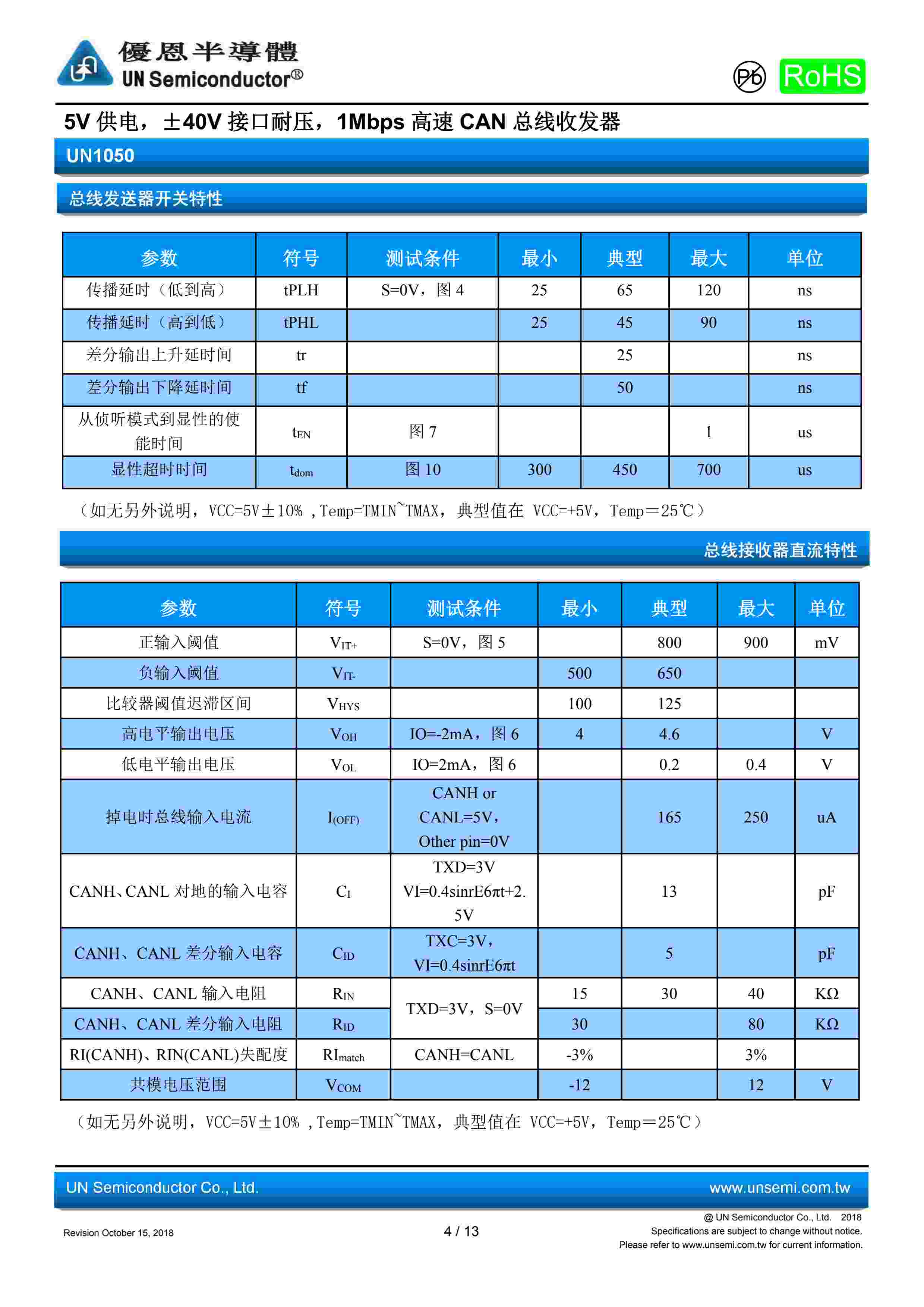5V 供电,±40V 接口耐压,1Mbps 高速 CAN 总线收发器