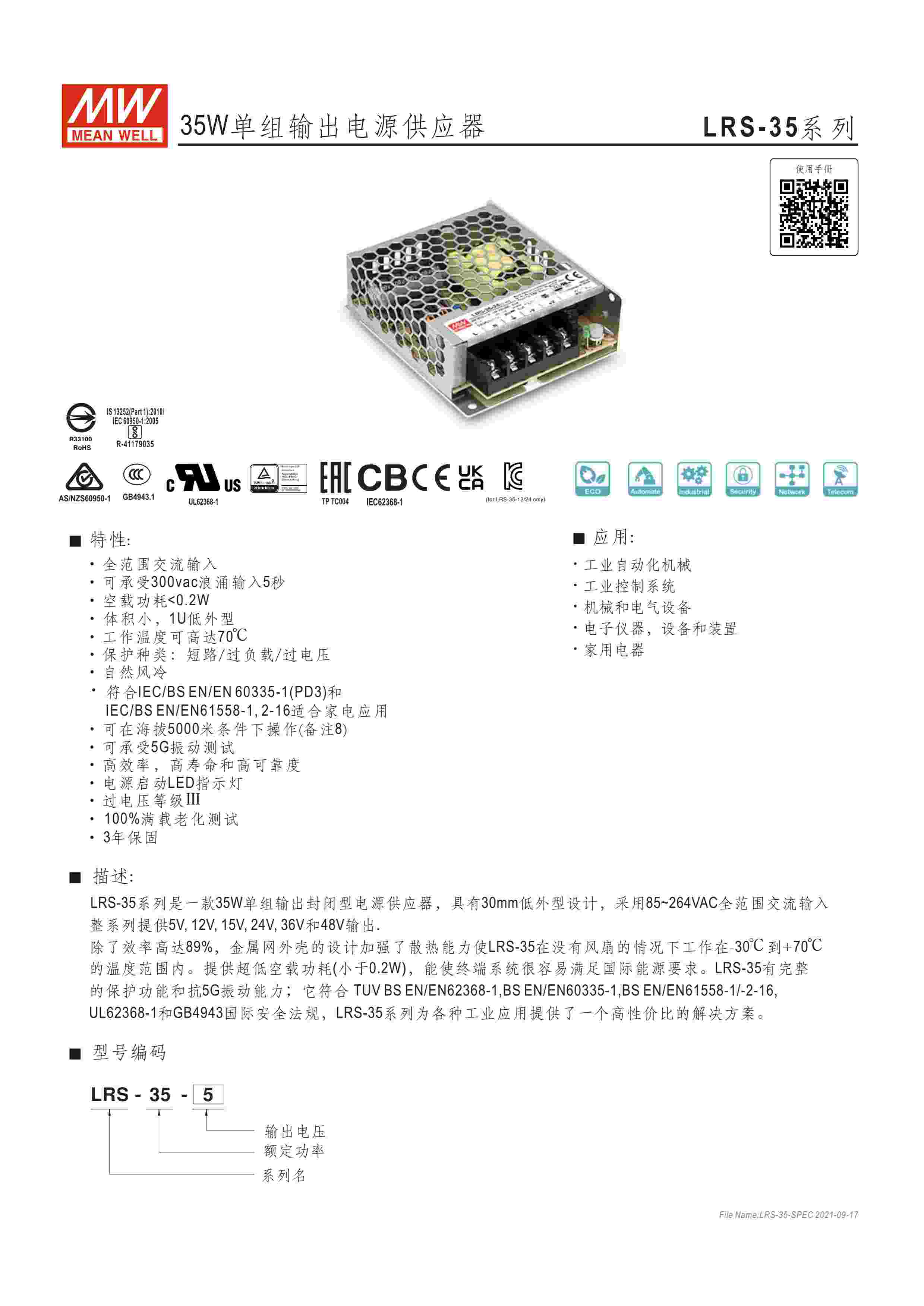 35W单组输出电源供应器