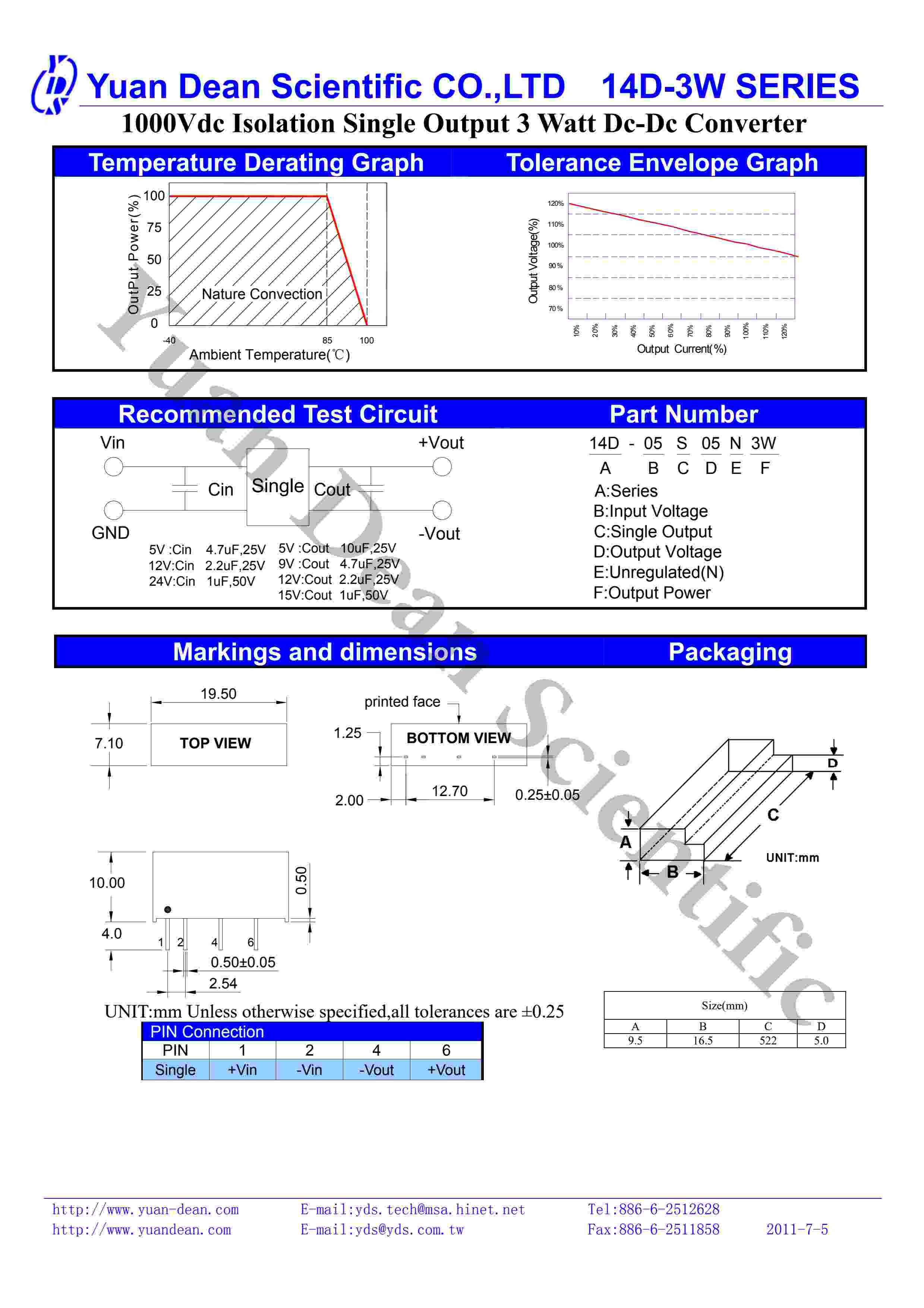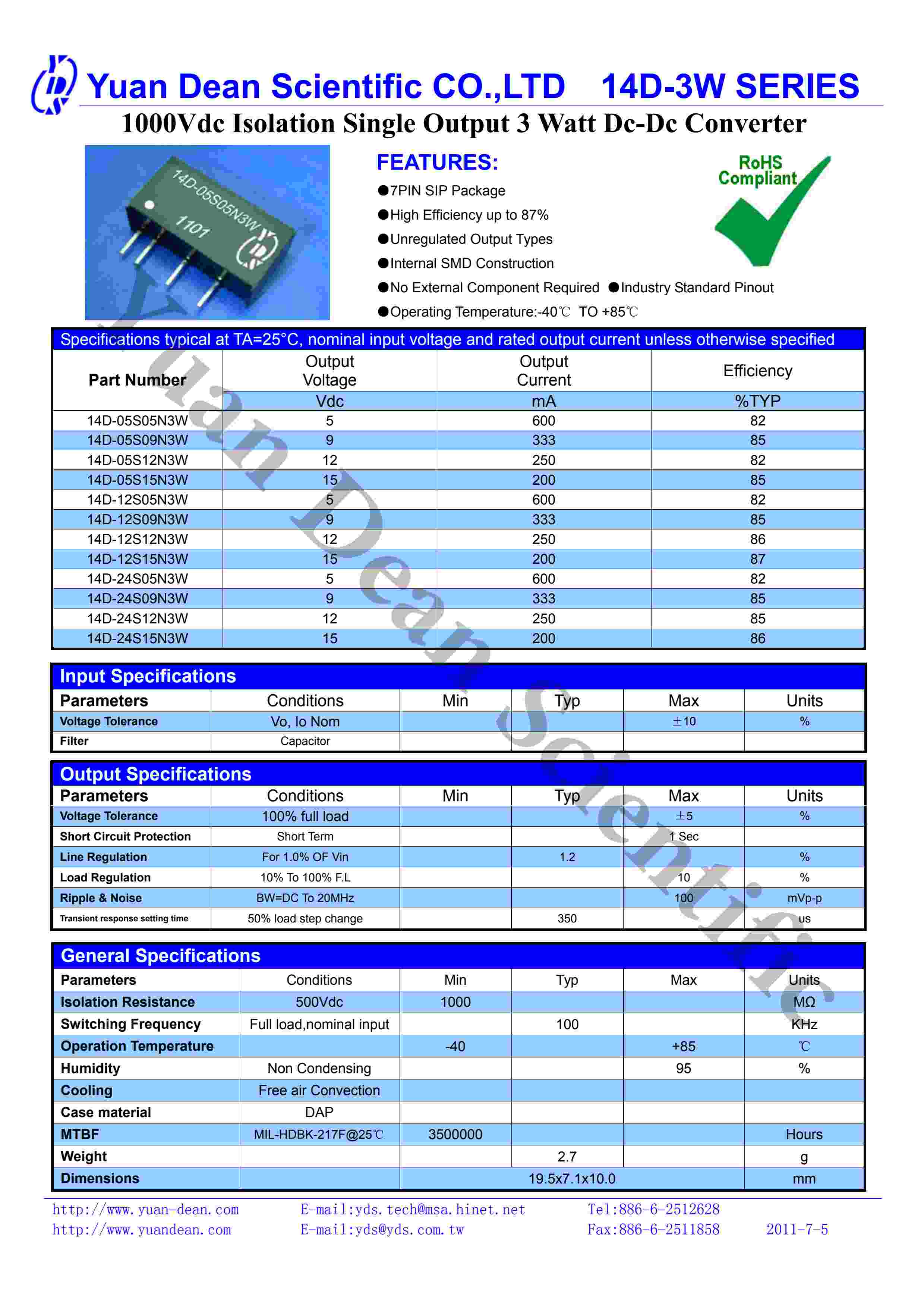 1000Vdc Isolation Single Output 3 Watt Dc-Dc Converter