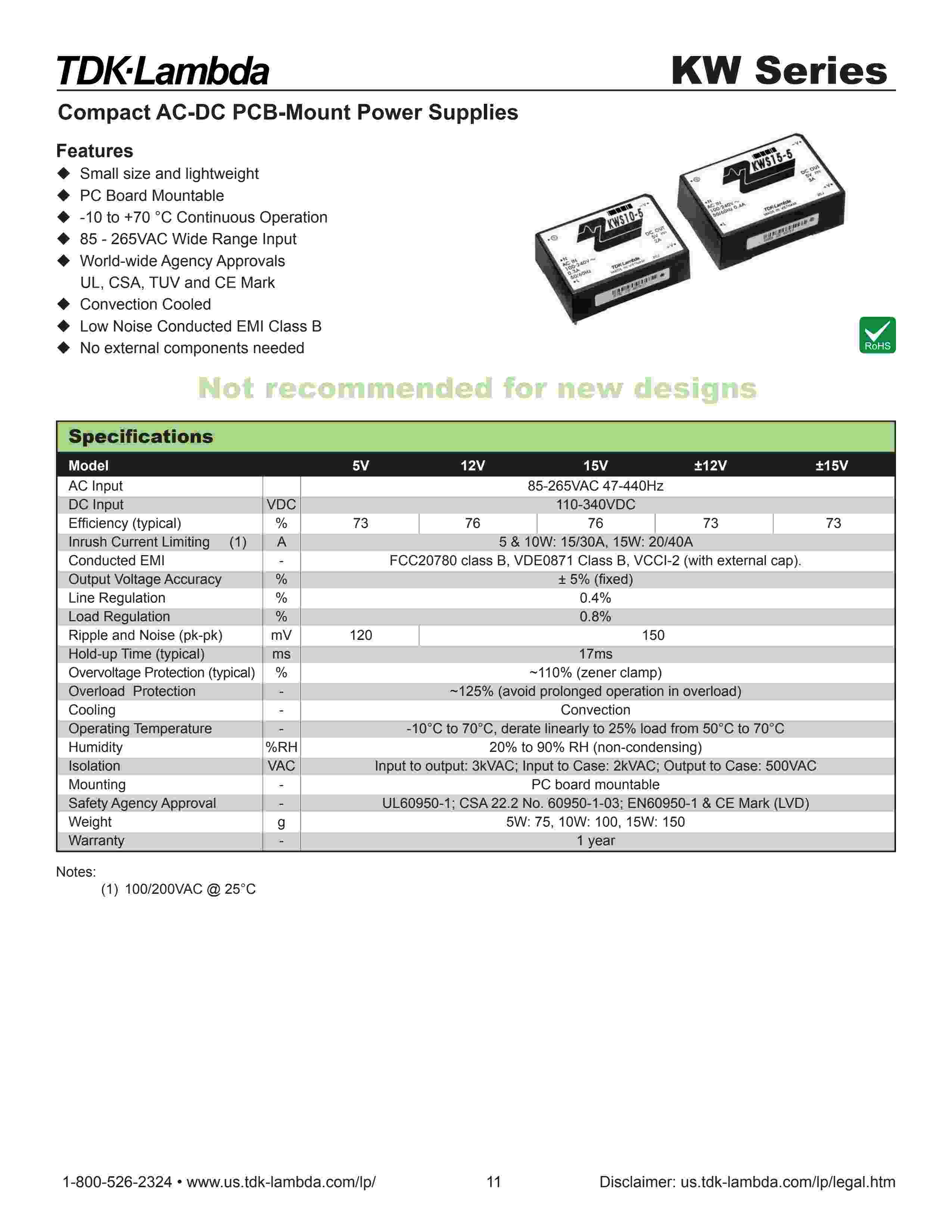 Compact AC-DC PCB-Mount Power Supplies