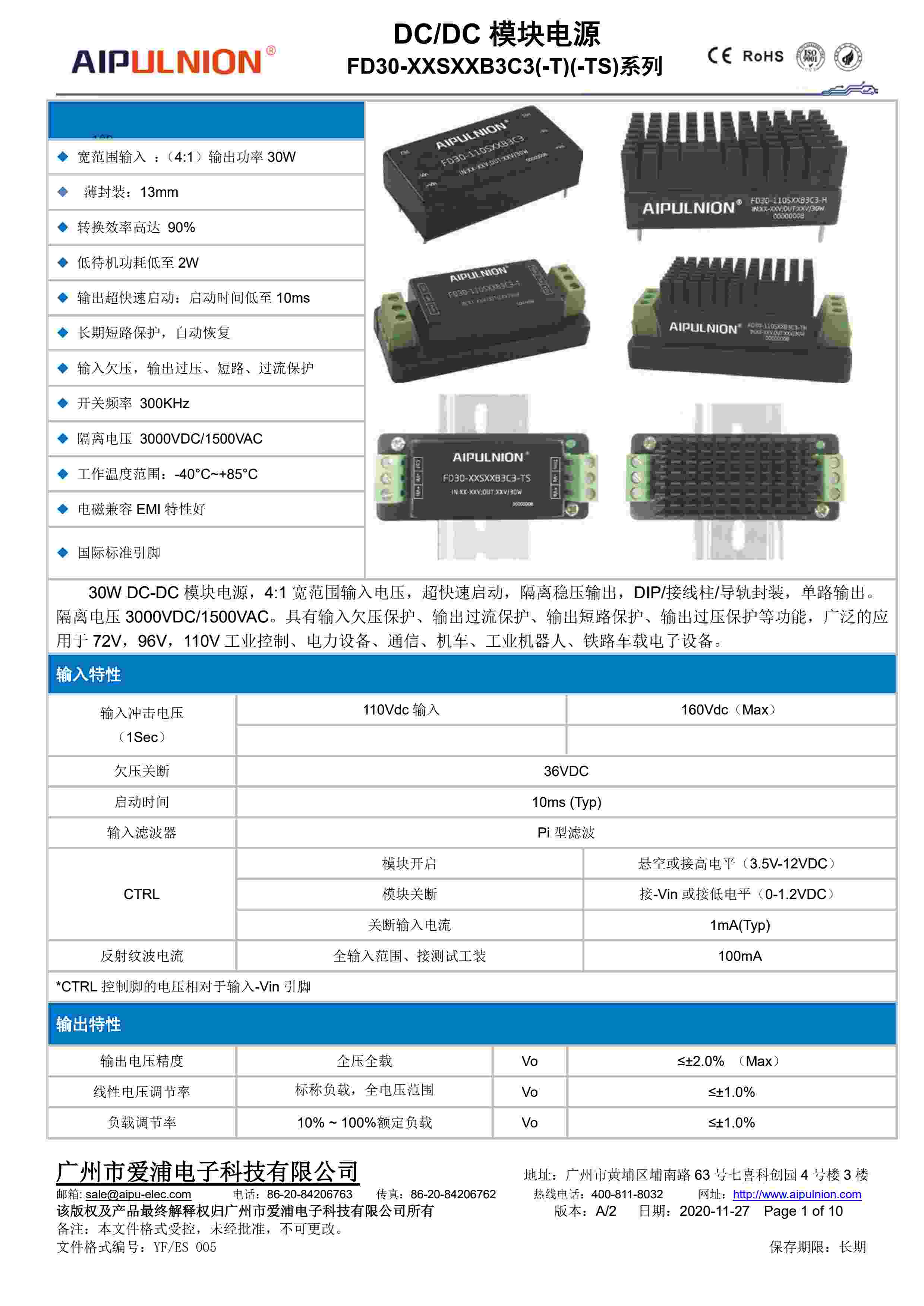 宽范围输入 :(4:1)输出功率 30W