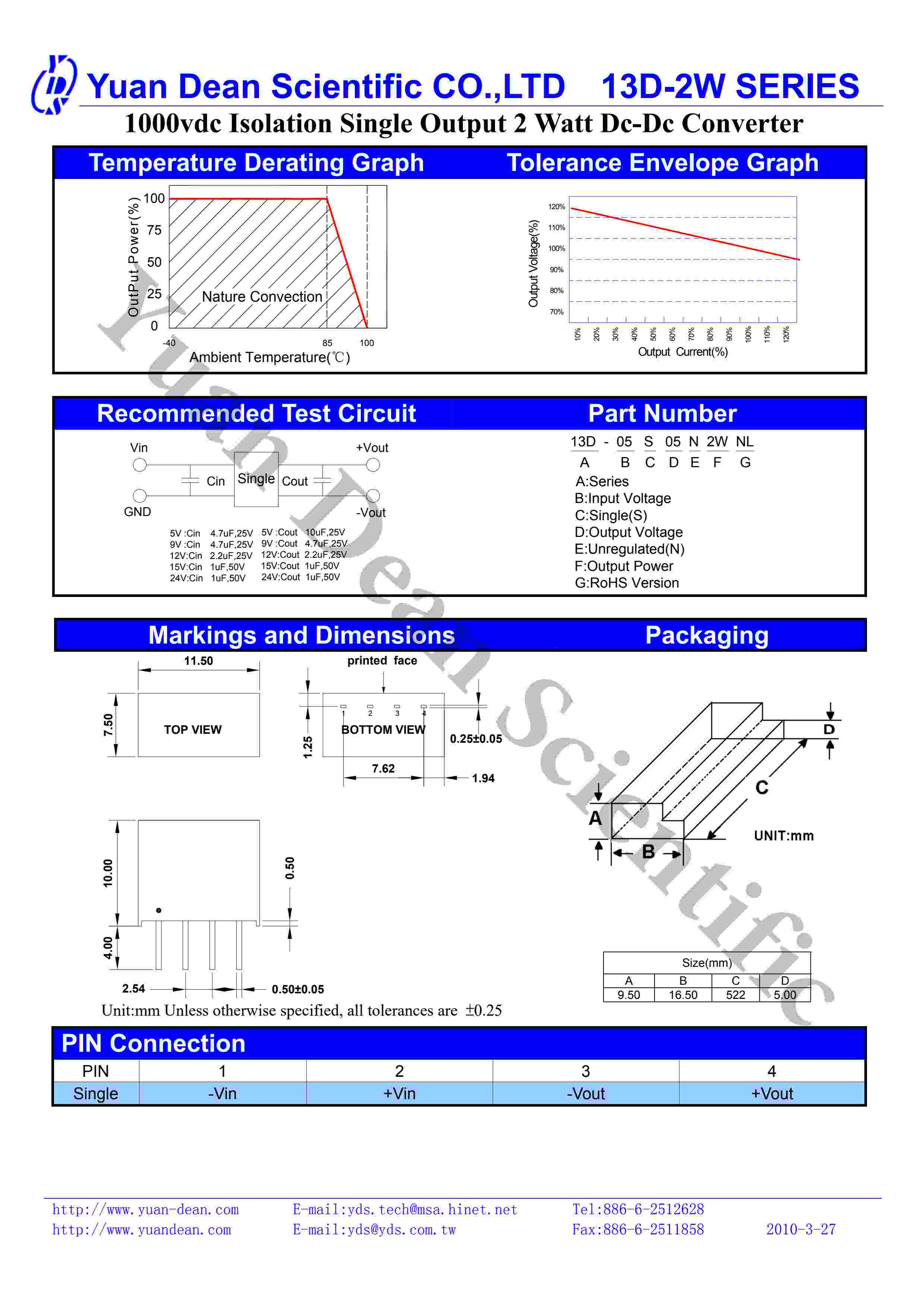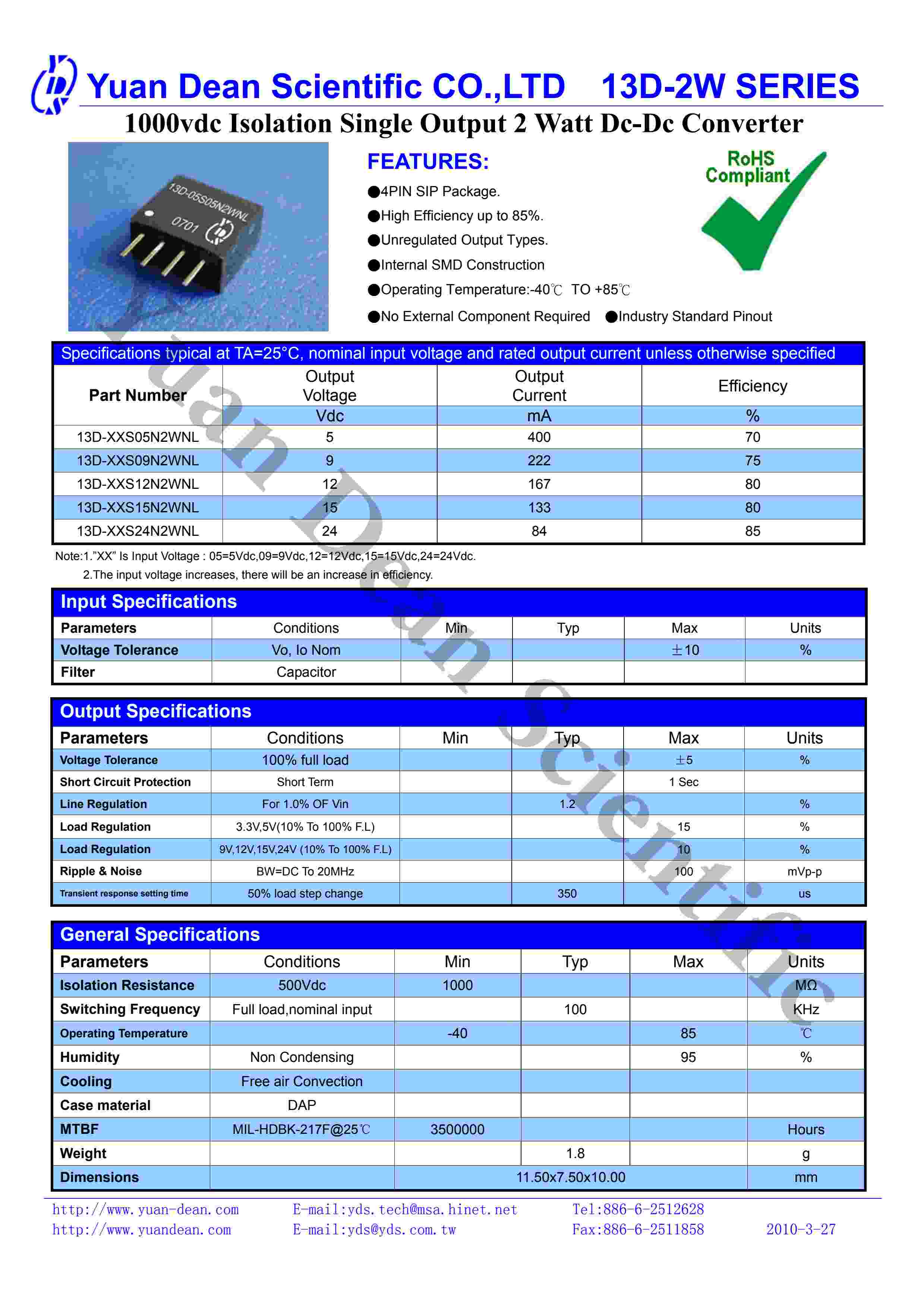1000vdc Isolation Single Output 2 Watt Dc-Dc Converter