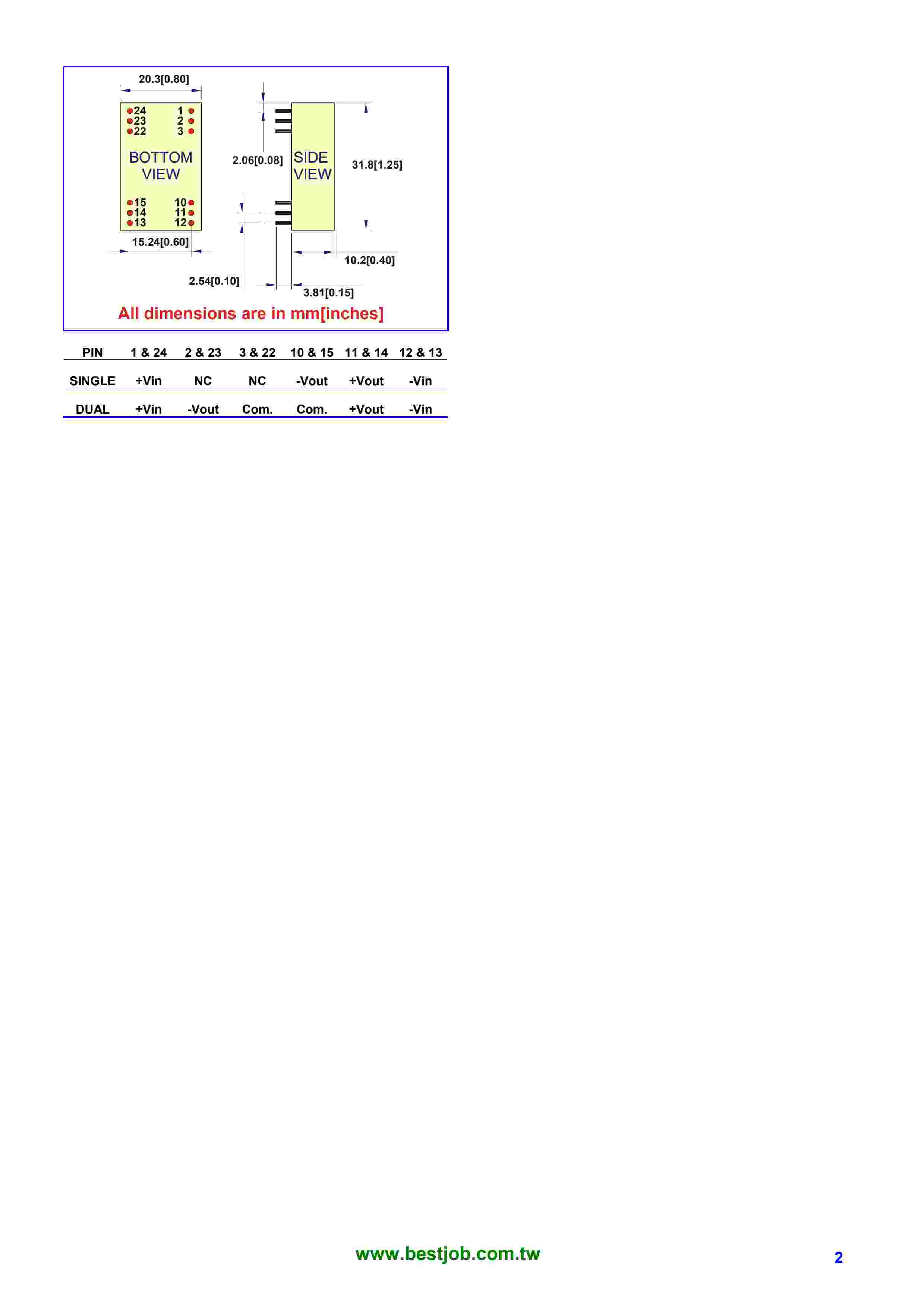 2W SINGLE/DUAL OUTPUT DC/DC Converter
