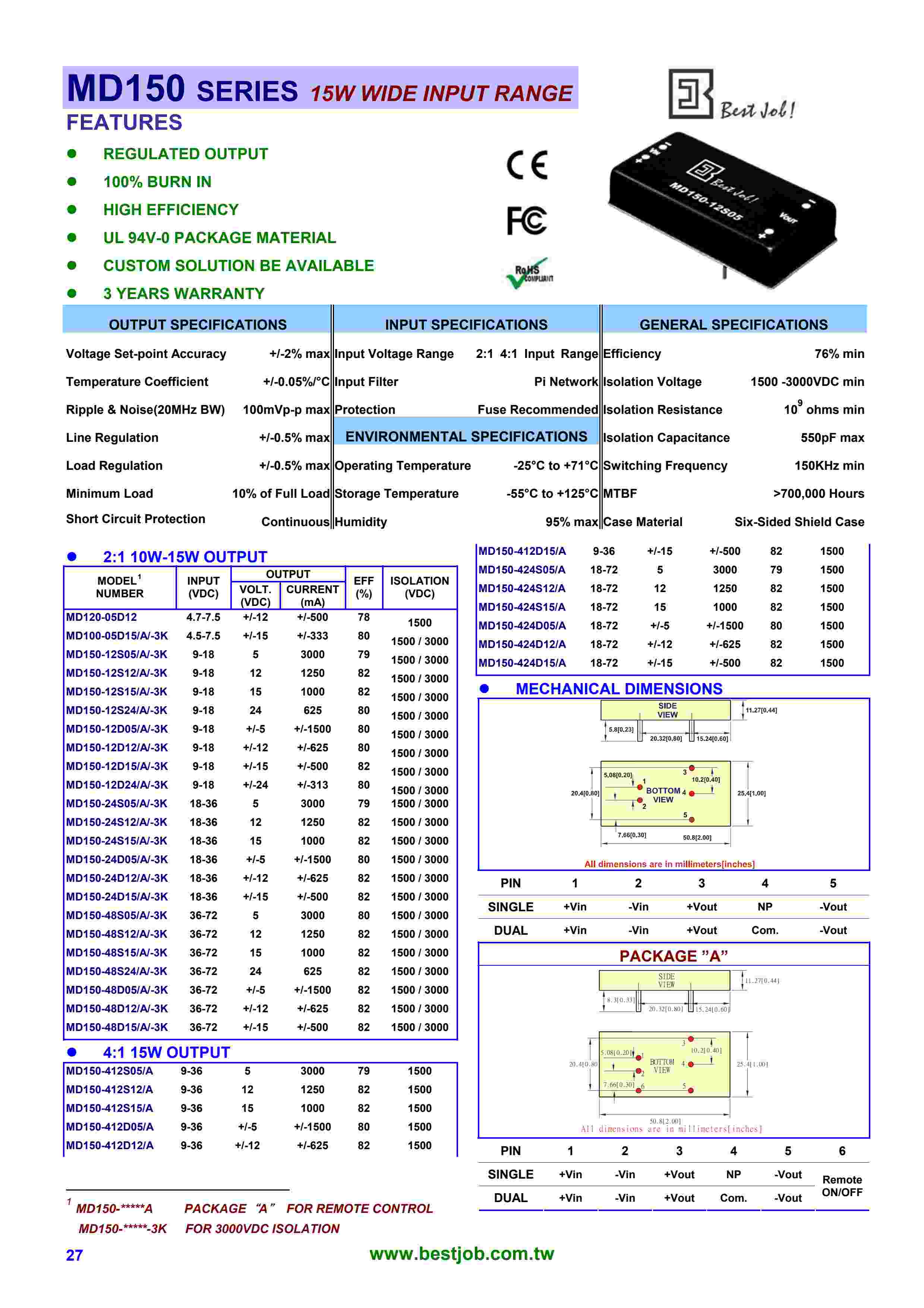 describe: 15W SINGLE/DUAL OUTPUT DC/DC Converter