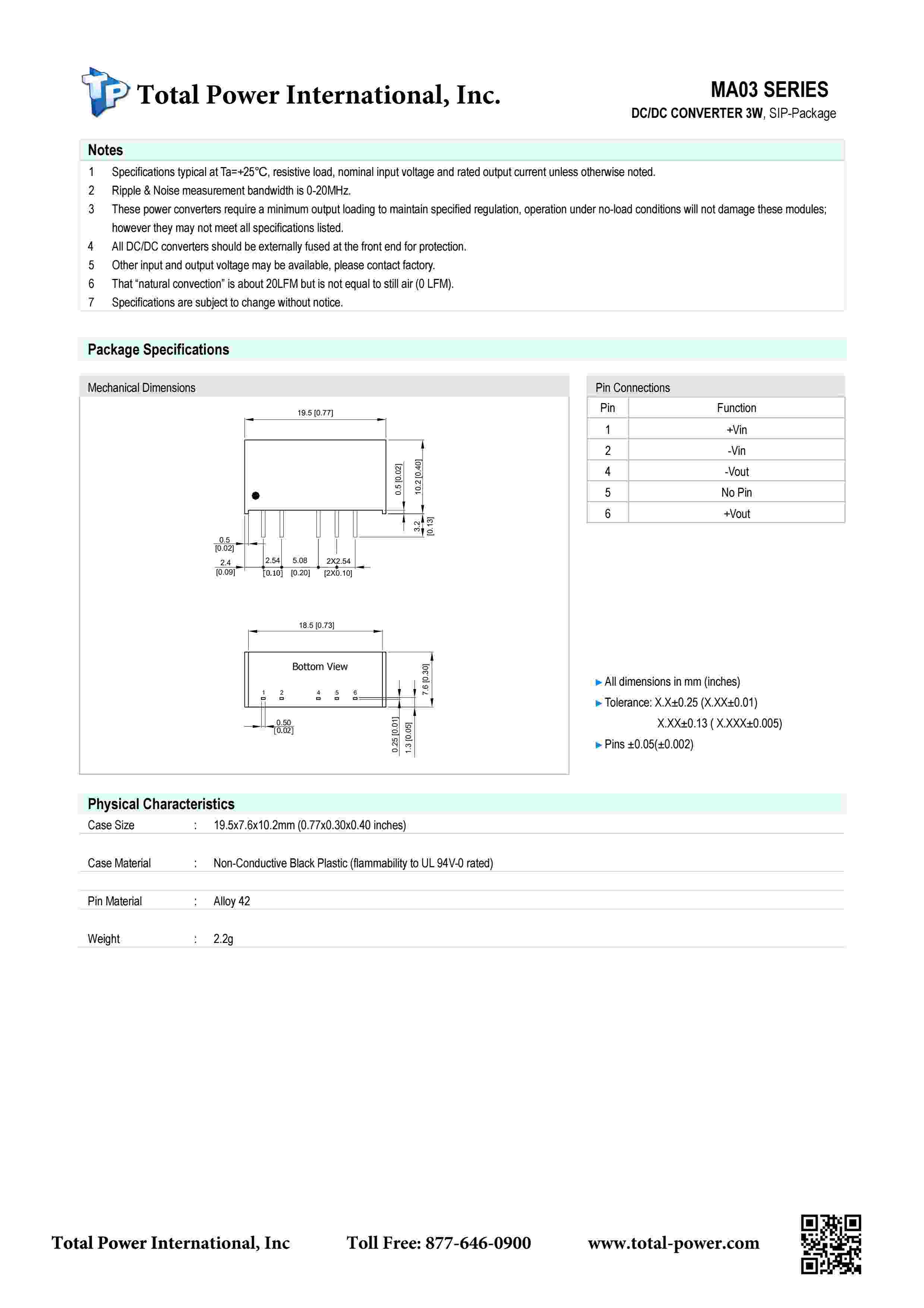 DC/DC CONVERTER 3W, SIP-Package,fixed input