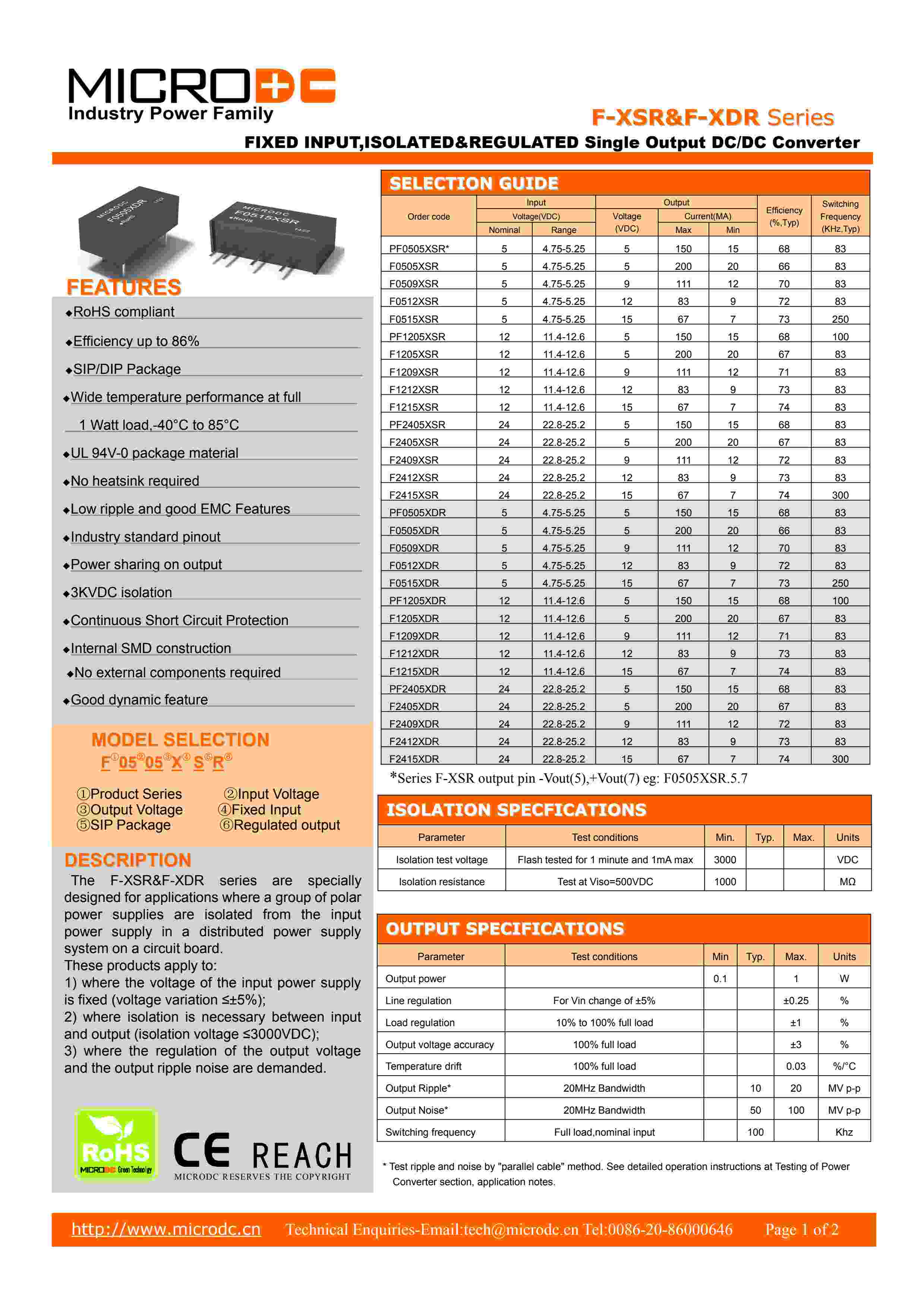 1W,FIXED INPUT,3KVDC ISOLATED ,Regulated output.