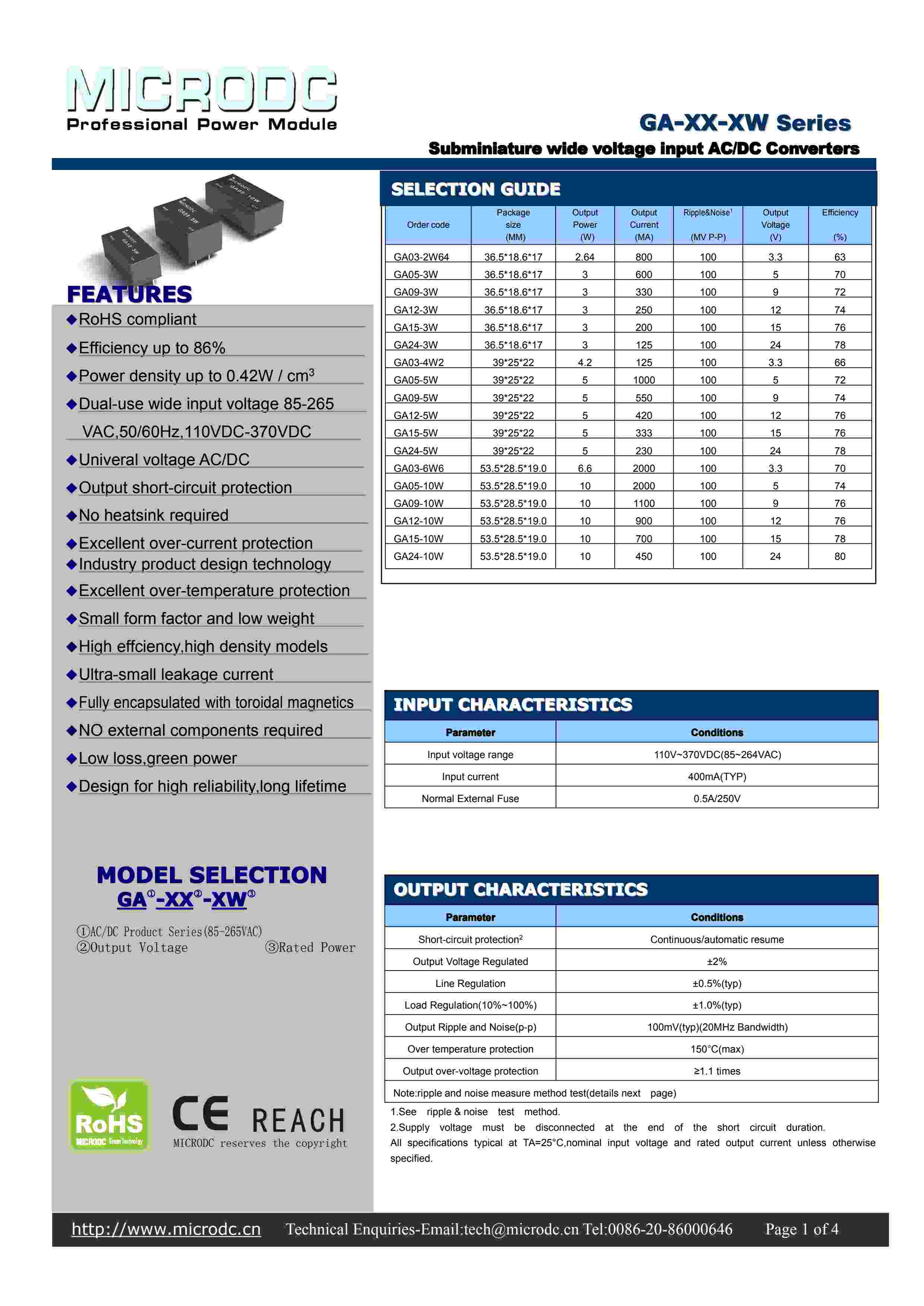 Subminiaturewide voltage input AC/DC Converters
