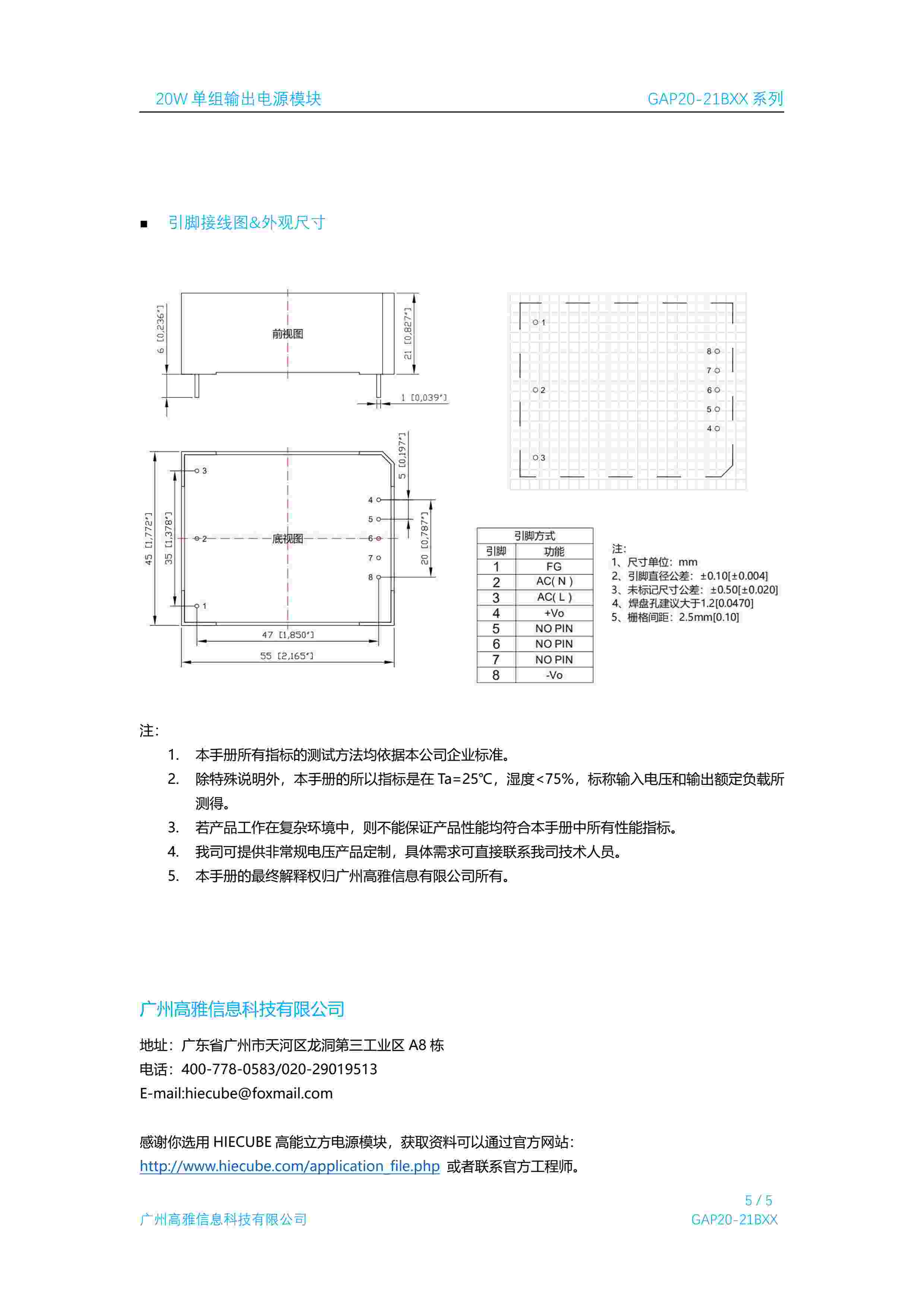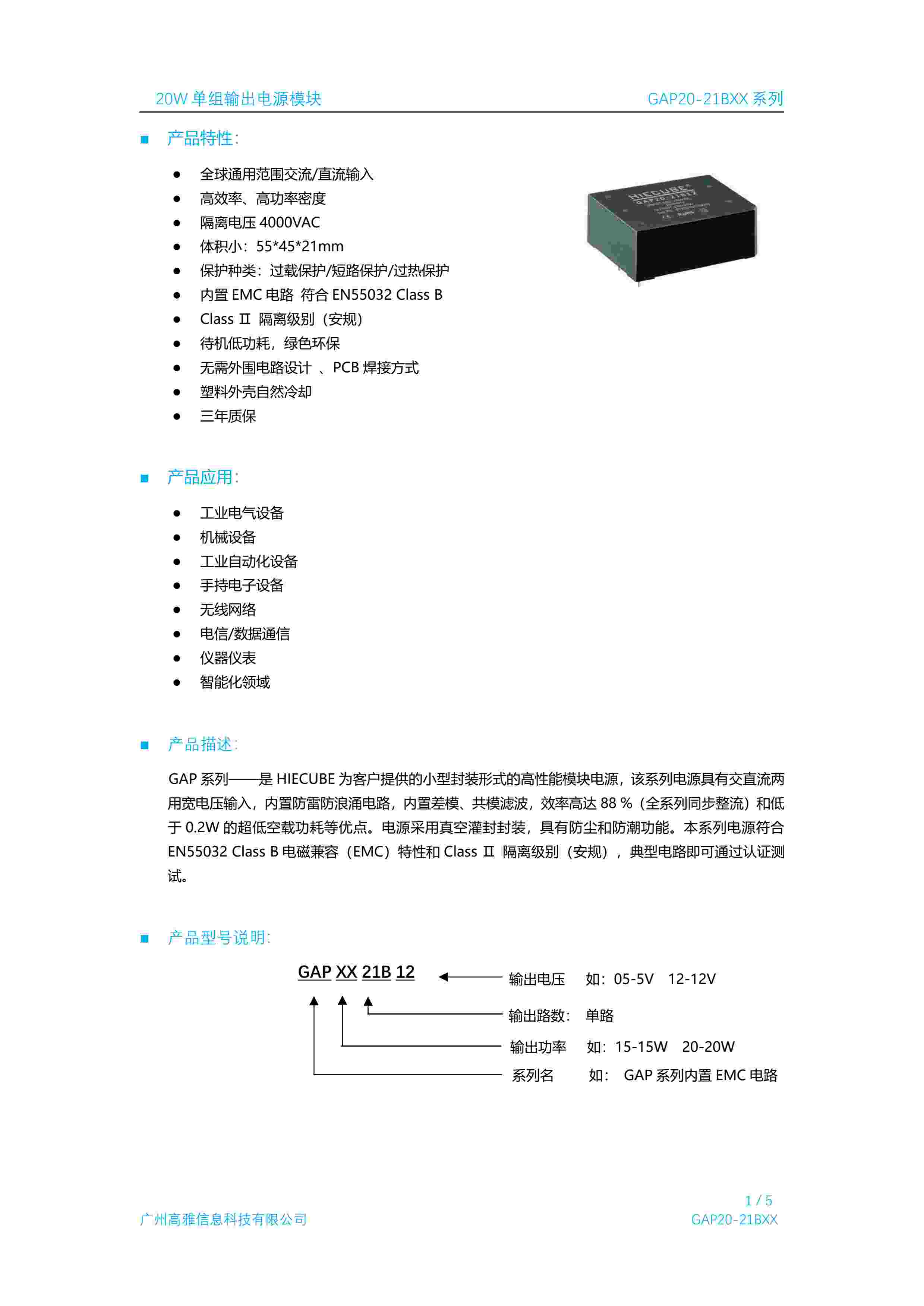 20W 单组输出电源模块