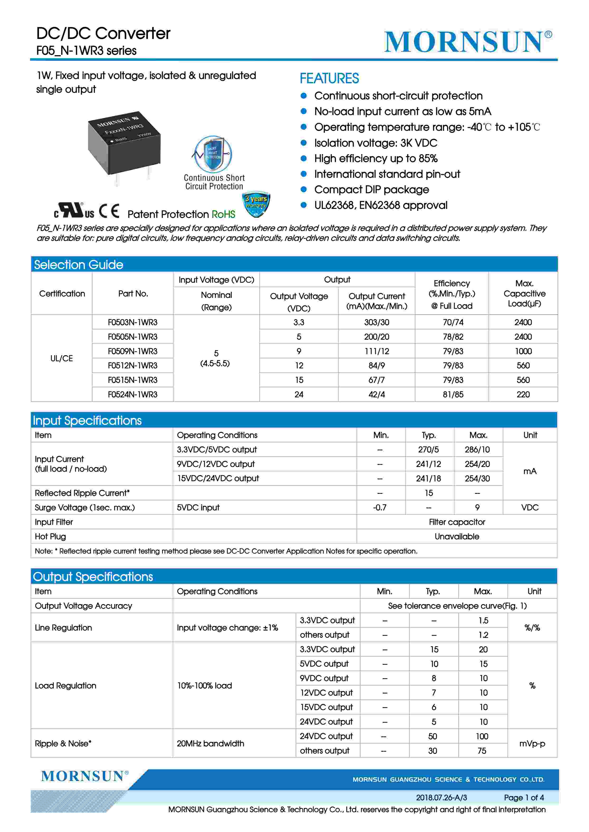 1W,Fixedinputvoltage,isolated&unregulatedsingleoutput