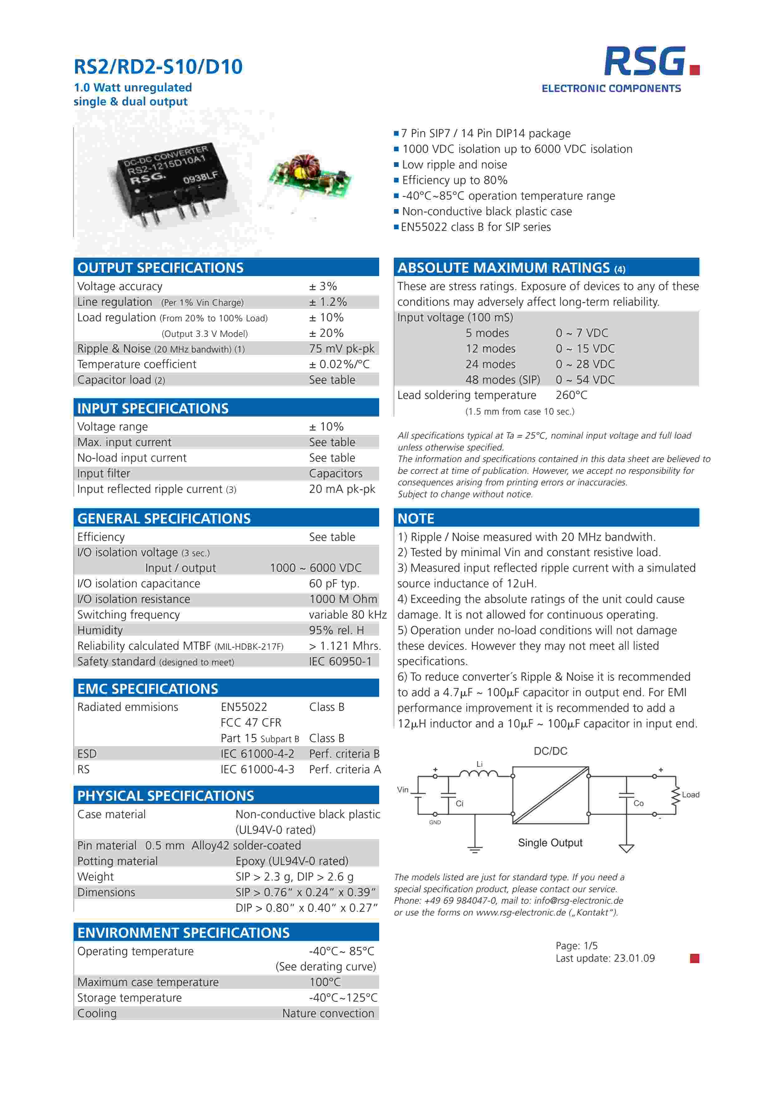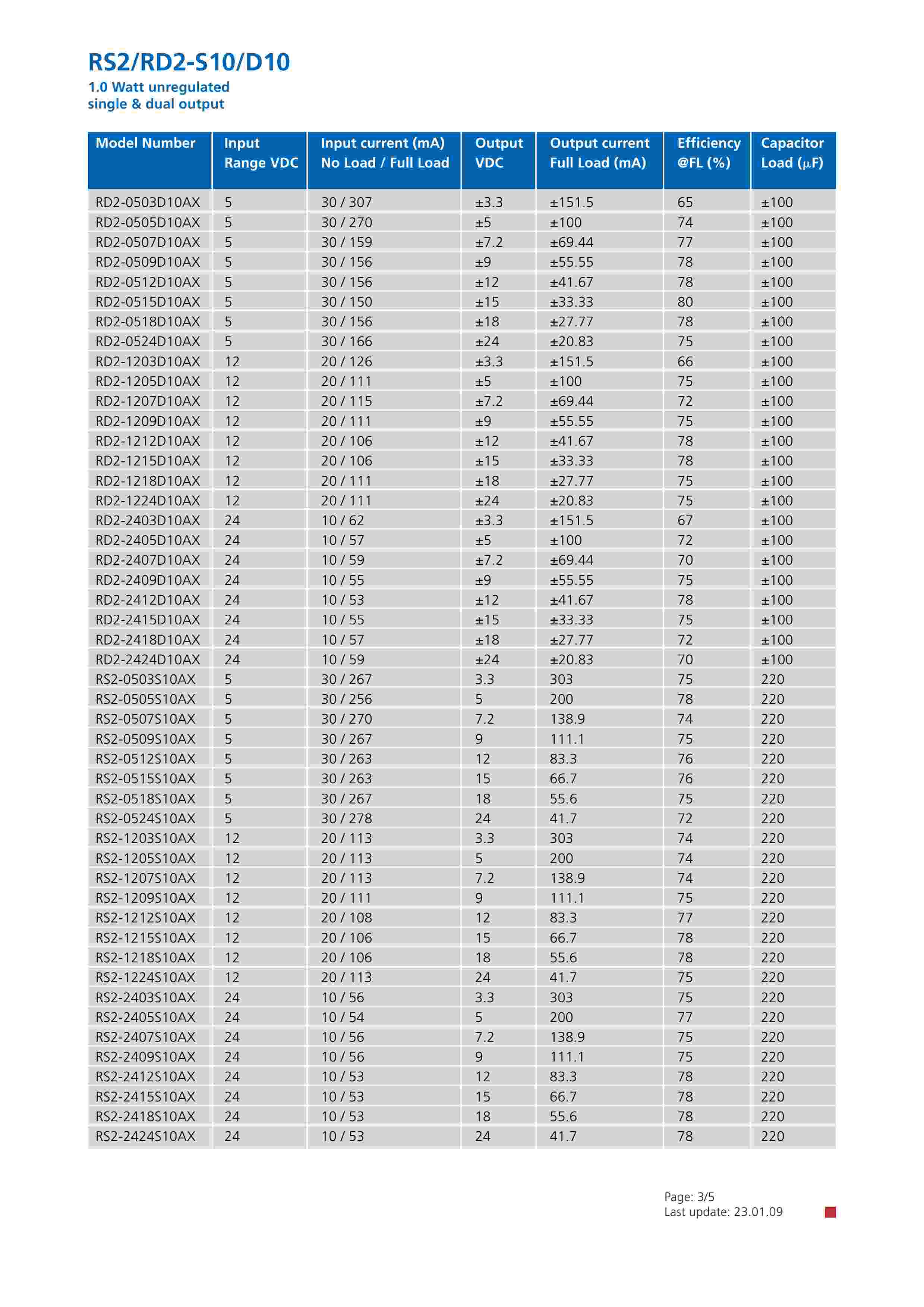 1.0 Watt unregulated dual output