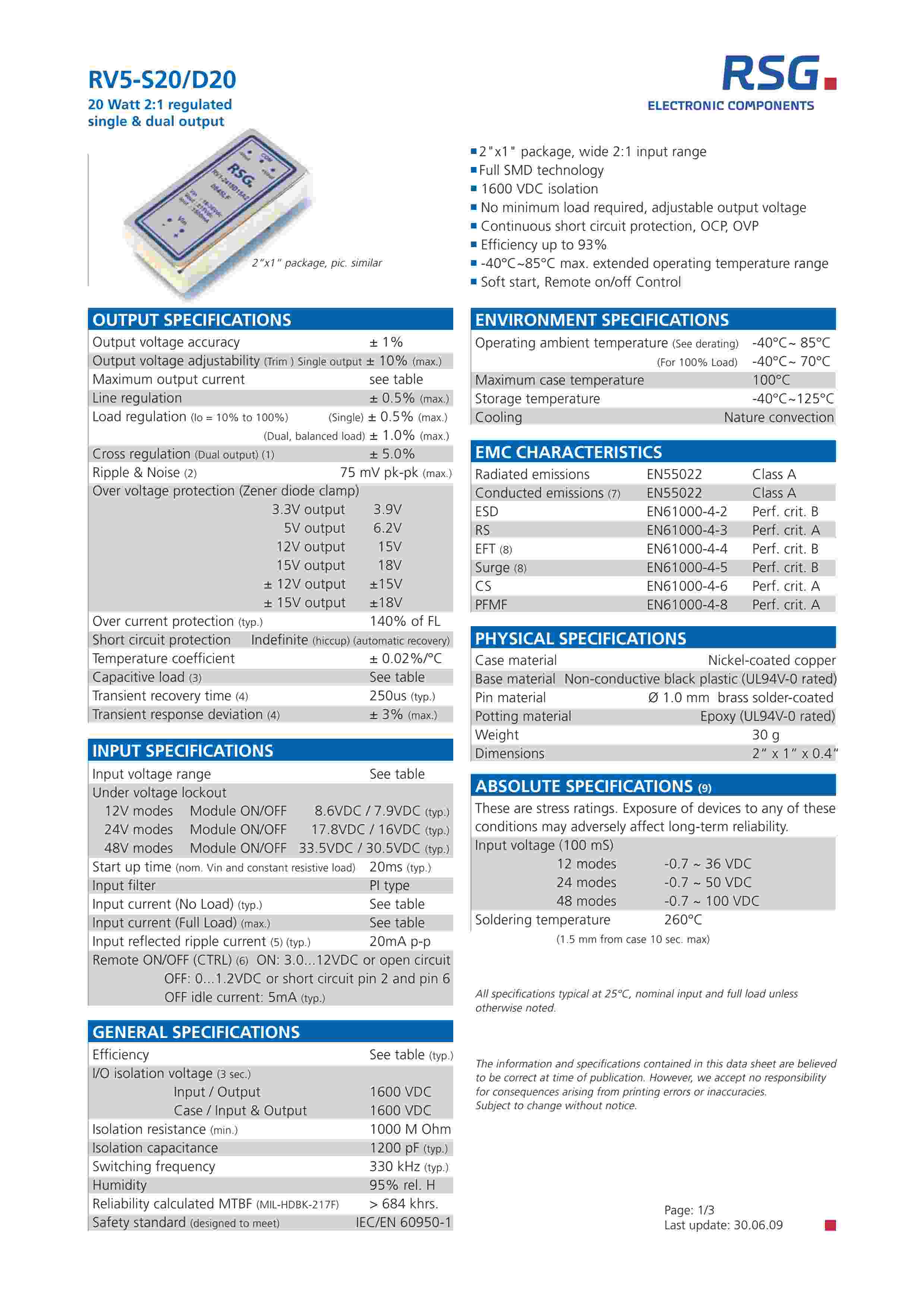 20 Watt 2:1 regulated dual output