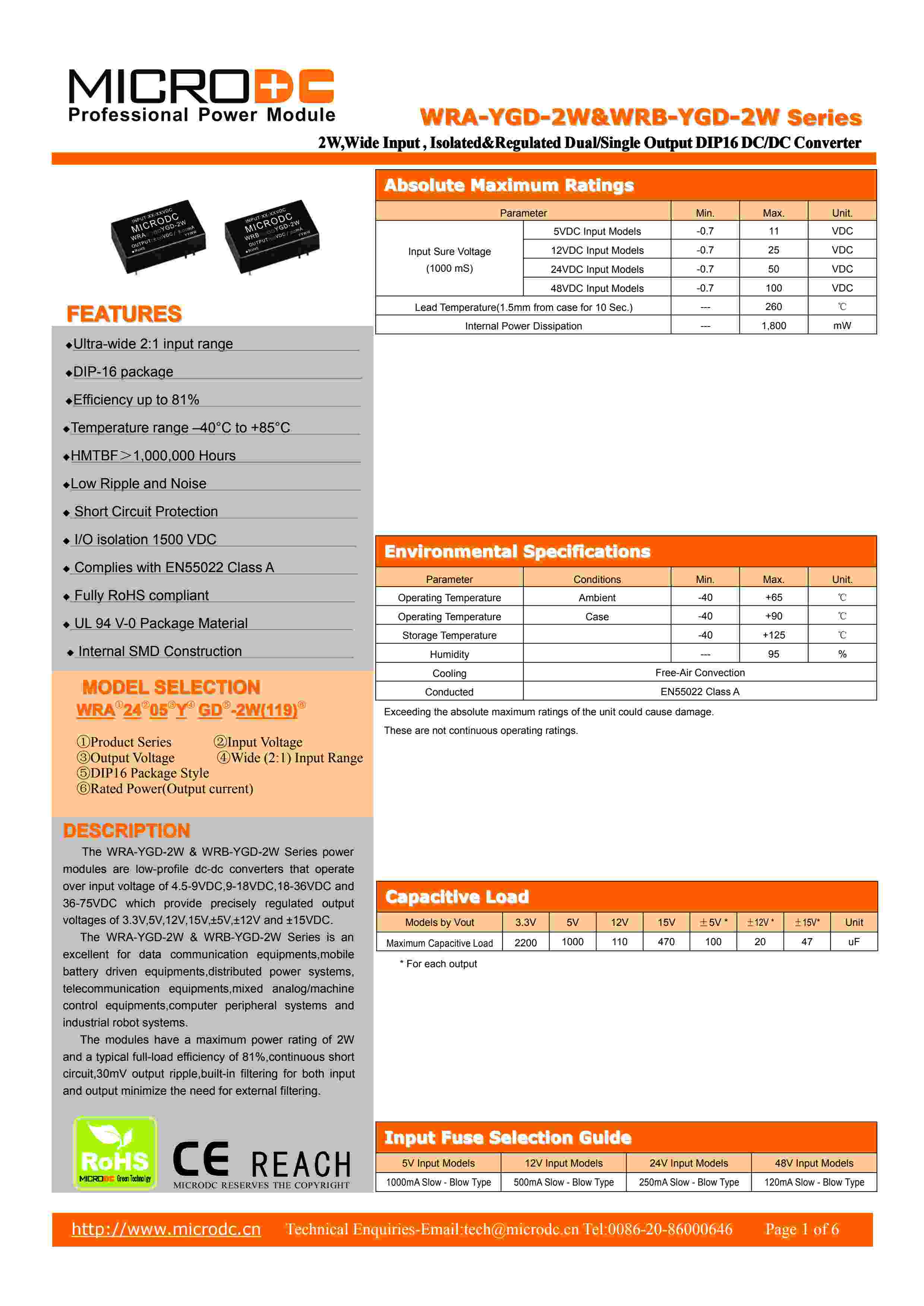 2W,Wide Input , Isolated&Regulated Dual/Single Output DIP16 DC/DC Converter