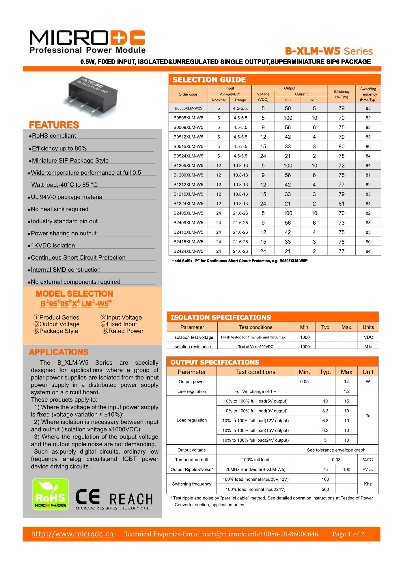 0.5W, FIXED INPUT, ISOLATED