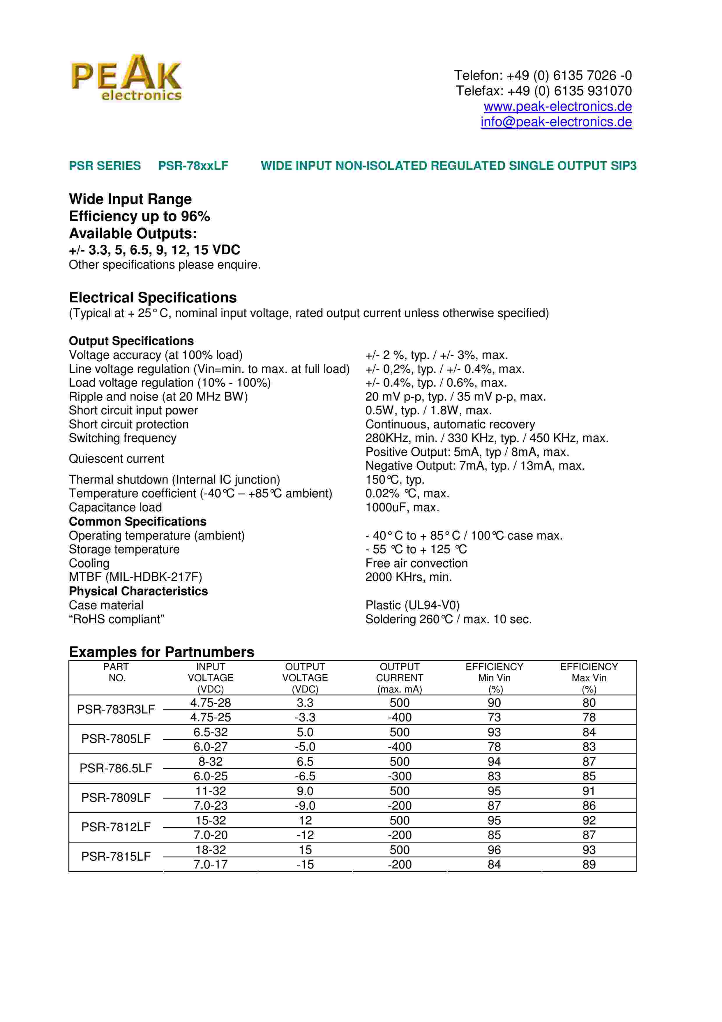 WIDE INPUT NON-ISOLATED REGULATED SINGLE OUTPUT SIP3