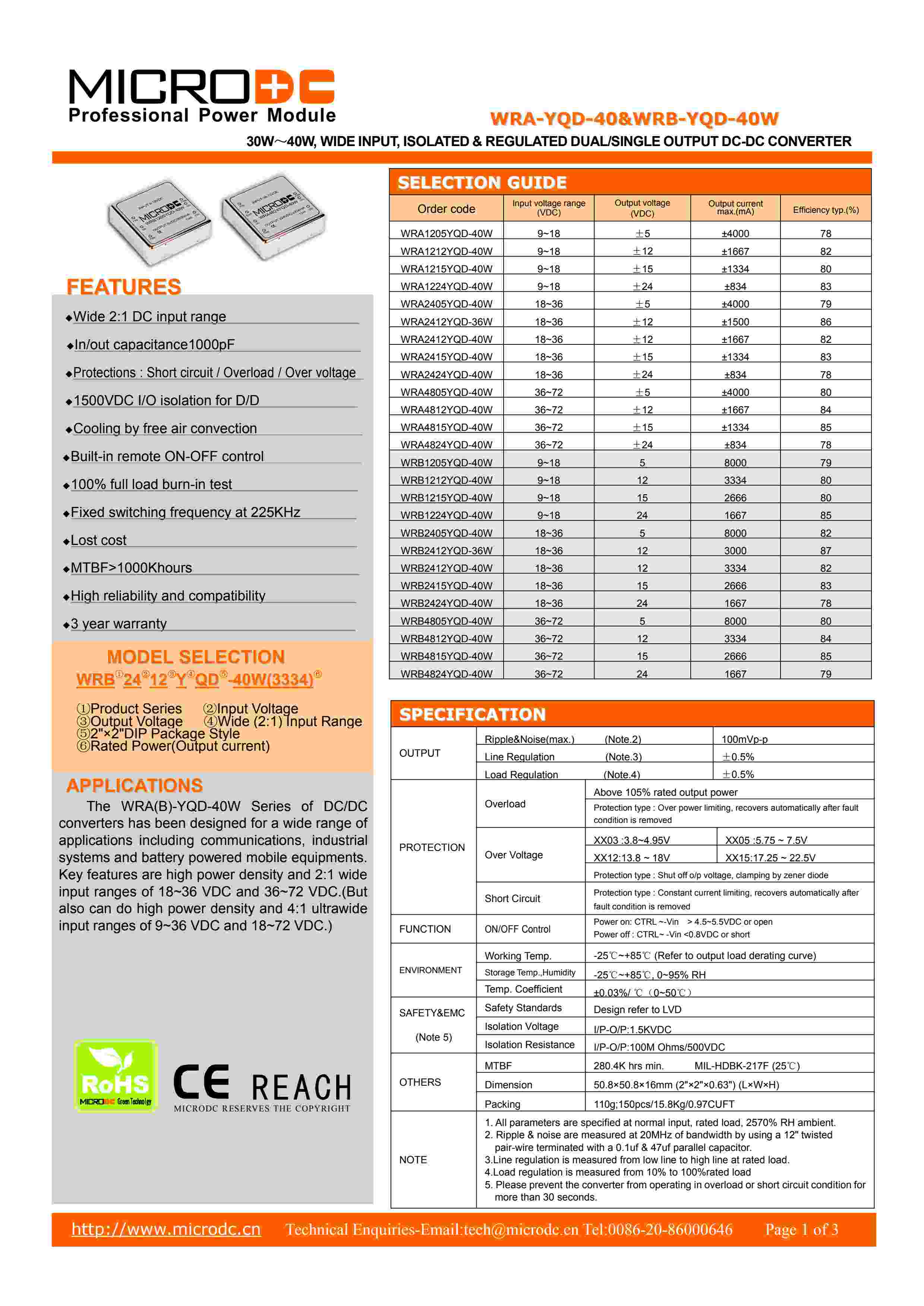 30W~40W, 2:1 Wide Input, Isolated