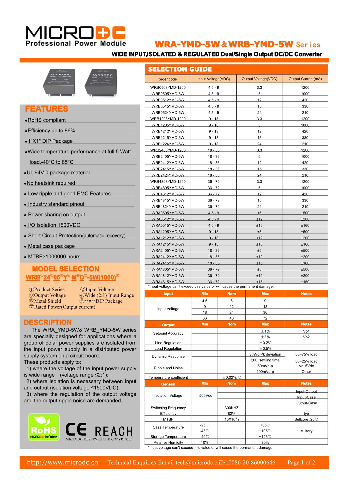 5W, WIDEINPUT,ISOLATED & REGULATEDDual/Single OutputDC/DCConverter